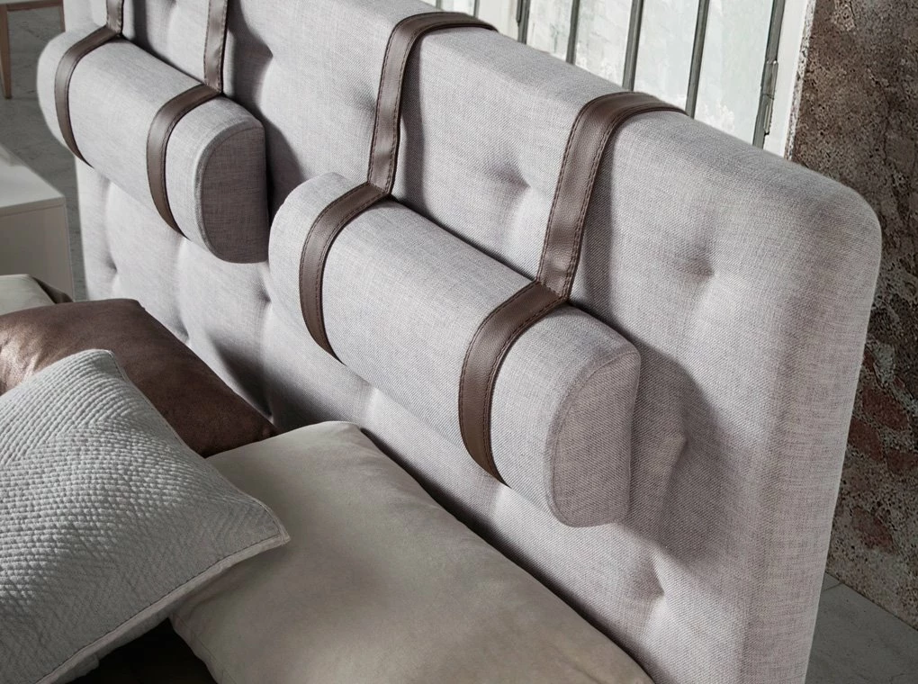 Cama tapizada tela gris modelo 7034 Angel Cerdá S.L. Cama de matrimonio de diseño moderno con estructura en madera chapada en nogal natural de 0,5mm tapizada en tela color gris, con un original cabecero capitoné de estilo elegante y con dos reposacabezas con tiras de polipiel color chocolate incluido, con el que conseguirás crear un espacio acogedor y personal, sin dejar de lado la mayor comodidad, gracias a su relleno de espuma de poliuretano de 25kg/m3. Incluye un confortable somier multilamas fabricado en madera de pino. ¡Perfecto para tu descanso! • ESTILO: Esta elegante cama de matrimonio tapizada en tela color gris con efecto capitoné y reposacabezas con tiras de polipiel en color chocolate, será la gran protagonista de tu dormitorio, aportando calidez y sofisticación. • MULTIESTANCIA: Por el diseño moderno y estilo elegante de su estructura de madera de nogal, será un mueble perfecto para cualquier tipo de dormitorio, creando un ambiente perfecto para el relax. • CALIDAD: Todas nuestras camas están fabricadas con materiales de la más alta calidad, siendo garantía de mobiliario duradero y funcional. • DECORACIÓN Y CONFORT: La combinación del tapizado en color gris con las patas de nogal, le ofrecen ese aire sofisticado, fiel a las últimas tendencias en decoración. Eso sí, sin dejar de lado la máxima comodidad. • MATERIAL y DIMENSIONES: Su somier de multilamas incluido en madera de pino, es compatible con el colchón de 150x200cm.