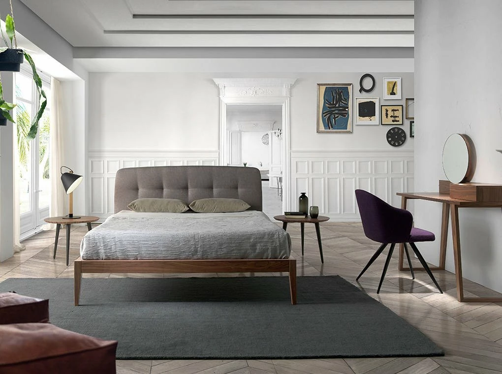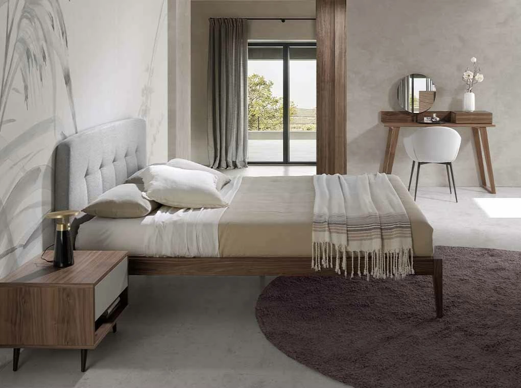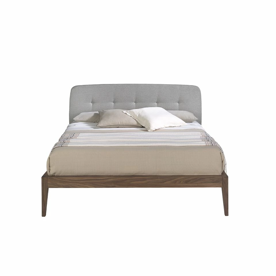 Cama tela gris capitoné modelo 7013 Angel Cerdá S.L. Cama de matrimonio de diseño moderno tapizada en tela color gris y estructura madera chapada en nogal natural de 0,5mm de espesor, con un original cabecero capitoné de estilo elegante con el que conseguirás crear un espacio acogedor y personal, sin dejar de lado la mayor comodidad, gracias a su relleno de espuma de poliuretano de 25kg/m3. Incluye un confortable somier multilamas fabricado en madera de pino. ¡Perfecto para tu descanso! • ESTILO: Esta elegante cama de matrimonio tapizada en tela color gris con efecto capitoné será la gran protagonista de tu dormitorio, aportando calidez y sofisticación. • MULTIESTANCIA: Por el diseño moderno y estilo elegante de su estructura de madera de nogal, será un mueble perfecto para cualquier tipo de dormitorio, creando un ambiente perfecto para el relax. • CALIDAD: Todas nuestras camas están fabricadas con materiales de la más alta calidad, siendo garantía de mobiliario duradero y funcional. • DECORACIÓN Y CONFORT: La combinación del tapizado en color gris con las patas de nogal, le ofrecen ese aire sofisticado, fiel a las últimas tendencias en decoración. Eso sí, sin dejar de lado la máxima comodidad. • MATERIAL y DIMENSIONES: Su somier de multilamas incluido en madera de pino, es compatible con el colchón de 150x200cm.