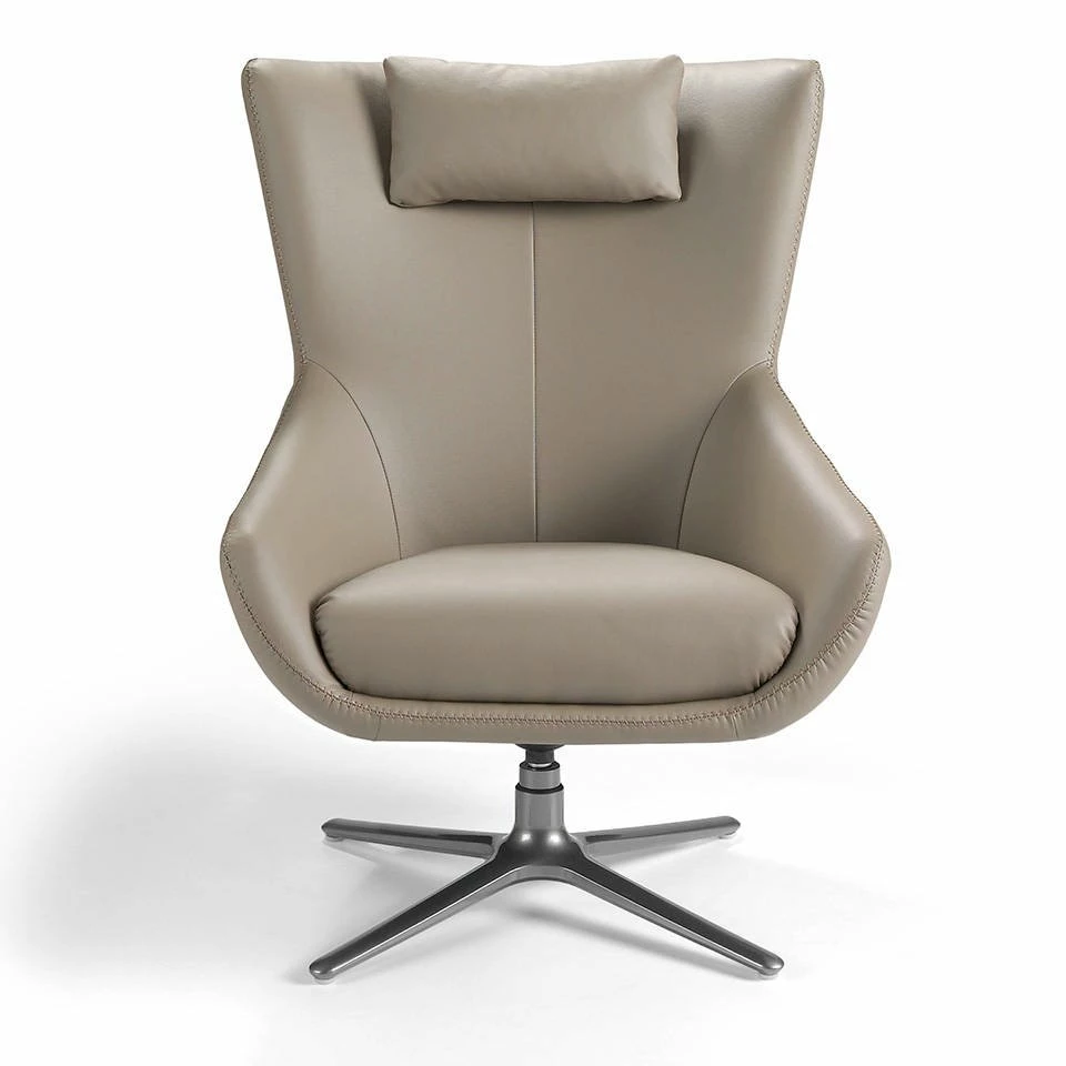Sillón giratorio de polipiel con cojín modelo 5044 Angel Cerdá S.L. Sillón giratorio tapizado en polipiel de 1,5mm de espesor color visón. El extra de comodidad lo forma su asiento y respaldo relleno en espuma de poliuretano de 25kg/m3, así como su cojín reposacabezas. Su base de acero macizo pulido oscurecido, aportará ese toque de vanguardia y elegancia que buscas para tu hogar. Este sillón de diseño moderno de la firma Angel Cerdá, aúna el estilo único y la personalidad de la marca, así como la mayor comodidad y estabilidad, gracias al suave tapizado y la original estructura de patas. Toda una pieza de diseño que no querrás que falte para dar el toque de color a tu salón o zona de lectura. ESTILO: Este sillón giratorio tapizado en polipiel de diseño moderno aportará el toque diferente y elegante que buscas para tu hogar, fiel a las últimas tendencias en decoración. MULTIESTANCIA: Versátil y funcional, su diseño con reposabrazos y cojín reposacabezas permite que encaje en cualquier tipo de salón, comedor o dormitorio, convirtiéndose en el gran protagonista de la sala. CALIDAD: Todos nuestros sillones están fabricados con materiales de la más alta calidad, siendo garantía de mobiliario duradero y funcional. DECORACIÓN: Por su diseño original fabricado con materiales nobles como la polipiel y el acero inoxidable pulido oscurecido, conseguirás el toque diferente y distintivo que buscas para tu sala de estar. CONFORT: El tamaño de su asiento y su relleno en espuma de poliuretano de 25kg/m3 te permitirá contar con el máximo confort, sin dejar de lado la más alta tendencia.