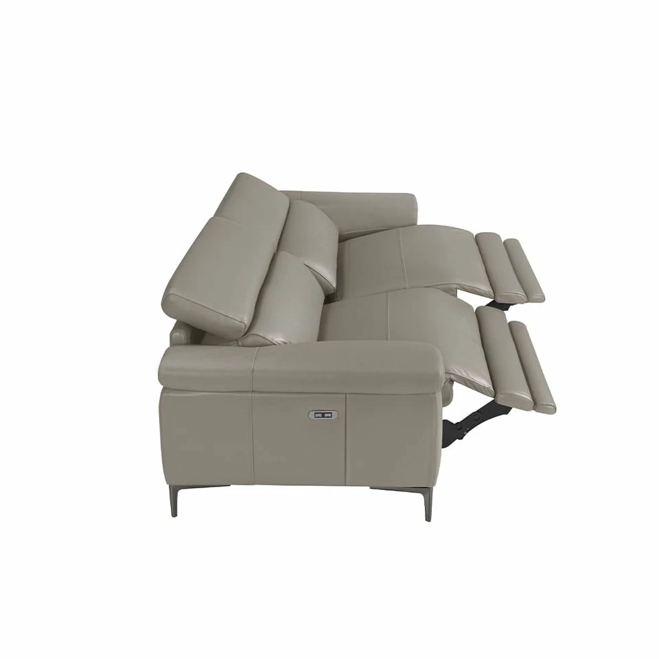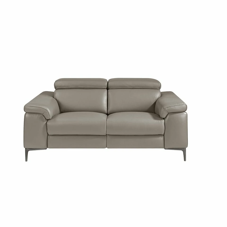 Sofá 2 plazas piel vacuno mecanismos relax modelo 6121 Angel Cerdá S.L.Sofá 2 plazas de diseño moderno tapizado en piel vacuno de 1mm de espesor color gris oscuro con mecanismos eléctricos de relax y reposacabezas independientes regulables. Un sofá de estilo minimalista y único, con una robusta estructura interna de madera de pino natural y patas de acero inoxidable oscurecido que le otorga ese toque de tendencia y elegancia que busca para su salón. Sus asientos con mecanismo eléctrico de relax, le aportan ese extra de comodidad que necesita para disfrutar de su momento de tranquilidad. La combinación perfecta entre diseño, elegancia y confort.ESTILO: Este sofá 2 plazas tapizado en piel de origen vacuno de la más alta calidad aportará el toque original y elegante que busca para su hogar, fiel a las últimas tendencias en decoración.• MULTIESTANCIA: Versátil y funcional, su elegante y sencillo diseño permite que encaje en cualquier tipo de salón, convirtiéndose en el gran protagonista de la sala.• CALIDAD: Todos nuestros sofás están fabricados con materiales de la más alta calidad, siendo garantía de mobiliario duradero y funcional.• DECORACIÓN: Gracias a su elegante diseño moderno, así como a la combinación de la piel con sus patas en acero inoxidable oscurecido, conseguirá el toque de vanguardia y sofisticación que busca para su sala de estar, a la vez que la mayor comodidad.• CONFORT: El tamaño de sus asientos y su relleno en espuma de 20kg/m3, así como sus reposacabezas independientes regulables y asientos con mecanismo eléctrico de relax, le permitirá contar con el máximo confort, sin dejar de lado la más alta tendencia.