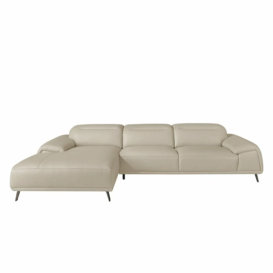 Sofá chaise longue piel vacuno gris taupé modelo 6149 Angel Cerdá S.L.Sofá chaise longue izquierda de diseño moderno tapizado en piel vacuno de 1,5mm de espesor color topo con reposacabezas articulados independientes. Un chaiselongue amplio y de estilo minimalista, con una robusta estructura interna de madera de pino natural y patas de acero inoxidable oscurecido que le otorga ese toque de tendencia y elegancia que busca para su salón. Su respaldo y asiento de espuma de poliuretano de 20kg/m3, le aporta ese extra de comodidad que necesita para relajarse. La combinación perfecta entre diseño, elegancia y confort. Chaiselongue en parte izquierda, mirando de frente.ESTILO: Este sofá chaise longue tapizado en piel de origen vacuno de la más alta calidad aportará el toque original y elegante que busca para su hogar, fiel a las últimas tendencias en decoración.MULTIESTANCIA: Versátil y funcional, su elegante y sencillo diseño permite que encaje en cualquier tipo de salón, convirtiéndose en el gran protagonista de la sala.CALIDAD: Todos nuestros sofás están fabricados con materiales de la más alta calidad, siendo garantía de mobiliario duradero y funcional.DECORACIÓN: Gracias a su diseño moderno minimalista con acabado del chaise longue a izquierda, conseguirá el toque diferente y sofisticado que busca para su sala de estar, a la vez que la mayor comodidad.CONFORT: El tamaño de sus asientos y su relleno en espuma de 20kg/m3, así como sus reposacabezas independientes regulables, le permitirá contar con el máximo confort, sin dejar de lado la más alta tendencia.