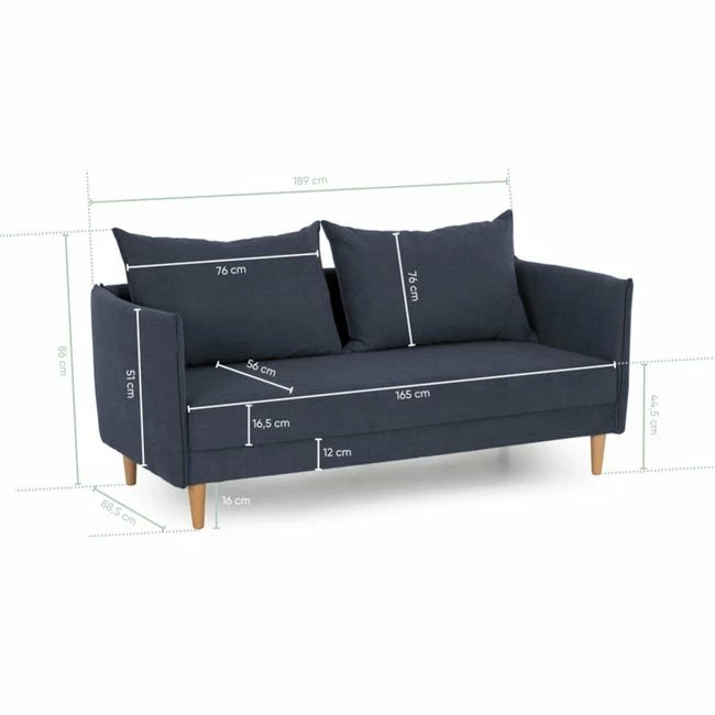 El sofá Melanie es la forma perfecta de relajarse después de un largo día. Es elegante y moderno, con un diseño único que destaca en cualquier habitación. La combinación de comodidad y estética lo hace perfecto para relajarse y desconectar. Los amplios cojines del respaldo se pueden ajustar para conseguir la mejor postura, mientras que la delgada estructura y los brazos curvados le dan un aspecto moderno. Los delgados brazos también maximizan la superficie de asiento, ofreciéndole mucho espacio para sentarse cómodamente. Además, los mullidos cojines del respaldo y el asiento garantizan un confort óptimo. Ya sea para ver la tele, leer un libro o tomarse un descanso, el sofá Melanie es el lugar perfecto para relajarse.- TEXTIL: Selección de tejido 100% poliéster de alta calidad con un tacto delicado y suave. Es muy transpirable y resistente a la decoloración, el desgaste y los arañazos.- ROBUSTO Y DURADERO: La estructura de madera no se deforma ni se agrieta fácilmente tras rigurosas pruebas de resistencia. Su núcleo está formado por una firme estructura de madera y sólidos muelles. – CONFORT Y SOPORTE: Este cómodo sofá ergonómico de 3 plazas tiene líneas sencillas y un respaldo de alta calidad con cojines sueltos, lo que le permite adaptarse totalmente a su postura. El cómodo asiento está compuesto por espuma de alta densidad y muelles de amplia gama para adaptarse perfectamente a su cuerpo. – PRÁCTICO: Además de un tejido fácil de limpiar, los cojines son extraíbles para limpiar el polvo acumulado y las patas altas permiten que la aspiradora haga su trabajo sin problemas. – COMPACTA Y FÁCIL DE MONTAR: Sus delgados brazos liberan espacio para maximizar la zona de confort. Una sola persona sólo necesita 10 minutos para montar todo el sofá de forma independiente.