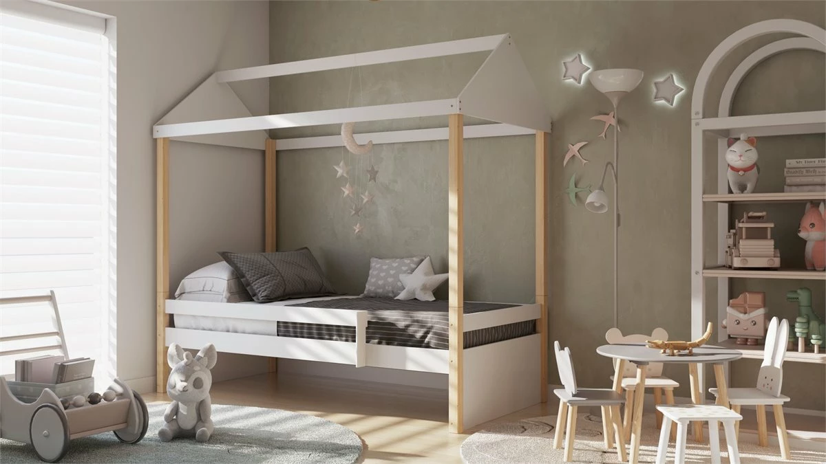 Venprodin | Fabricantes de muebles en España desde hace más de 10 años | Esta cama única crea un espacio divertido y adorable que no solo sirve como una cómoda zona para dormir, sino también como un espacio para que tus hijos jueguen y se diviertan | Entrega a Pie de Calle. No Incluye Montaje – No Incluye Colchon | Nuestra litera está hecha de MDF en color Blanco | Esta Casita cama para niños está diseñado con una forma de casa, que gana las preferencias de los niños y ofrece una feliz hora de dormir. Es decorativo y puede combinar con diferentes estilos de habitación de los niños, dando la espaciosa chispa de estilo que es a la vez moderno y atemporal. La cama es fácil de montar. Dimensión total: 203 x 98 x 186 cm (l x w x h, máx. Capacidad de carga: 100 kg.