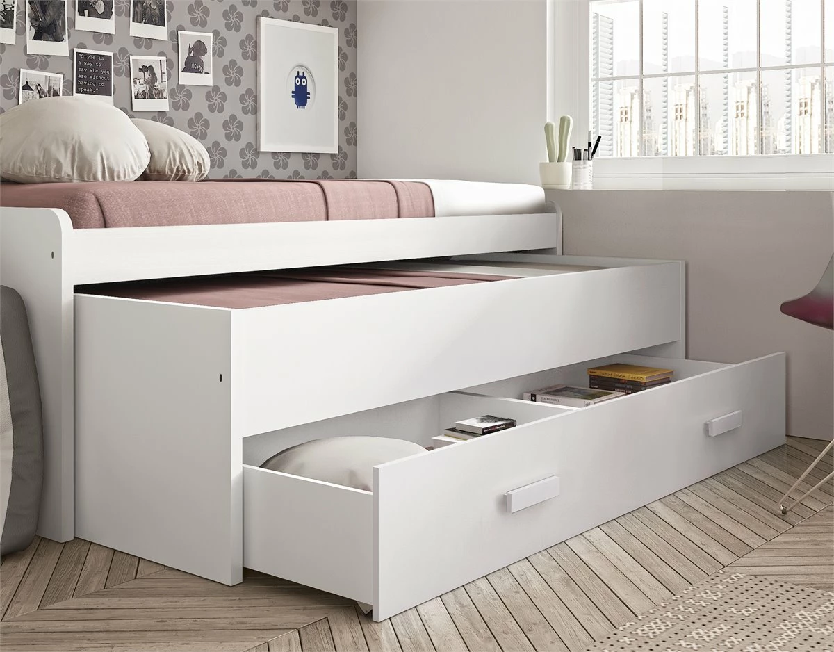 Venprodin | Fabricantes de muebles en España desde hace más de 10 años, | Entregamos y subimos el pedido hasta la puerta de su domicilio, | Todos nuestros muebles están hechos con aglomerado de alta densidad y melamina, | Medidas y Peso: Alto 73cm x Ancho 201cm x Fondo 100cm x Peso 96,4586 Kg | Color Blanco | Cama Compacta con gran firmeza y resistencia al rayado, excelente calidad, Diseño eficiente y elegante,