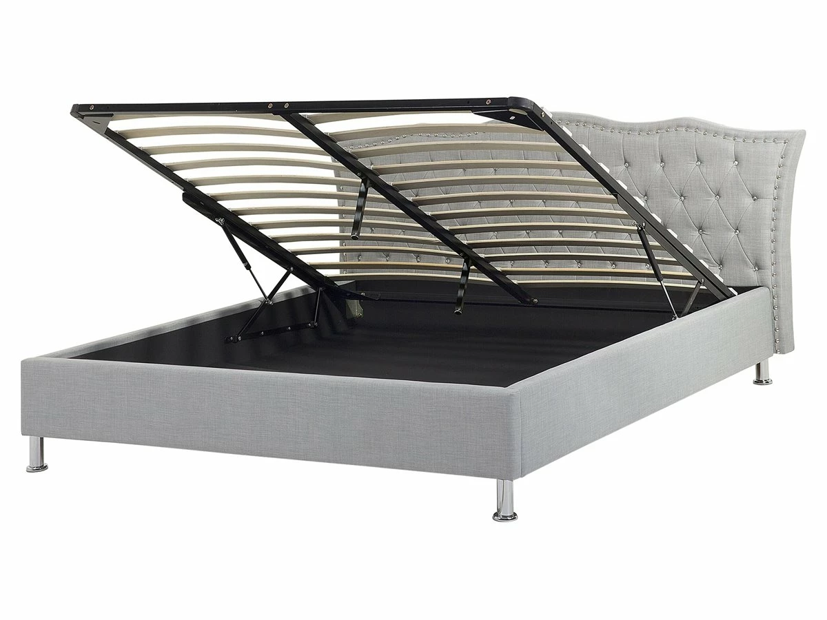 Cama de diseño glamuroso. Añade a tu dormitorio esta cama de diseño clásico. Está fabricada a partir de tela de poliéster de alta calidad. La estructura resistente garantiza un sueño saludable y proporciona soporte al colchón. El capitoné de botones y las tachuelas decorativas en el cabecero llaman poderosamente la atención. El amplio espacio de almacenaje optimiza la superficie disponible de la habitación. Detalles: Tipo de Producto: Cama matrimonial Estilo: Tradicional Color: Gris Tonalidad: Gris claro Tipo de material: Tejido Material principal: Poliéster Material adicional: Metal Material del almacenamiento: Tablero de fibra Composición del Material: 100% Poliéster Parte posterior tapizada: No Tipo de almacenamiento: Elevado Almacenamiento: Sí Dimensiones: Dimensiones del reposacabezas: 192×92 Ancho: 192 cm Dimensiones del almacenamiento: 161x203x10.5 Longitud: 215 cm Altura: 103 cm Superficie para dormir: 160×200 cm Peso: 75 kg Capacidad de peso: 220 kg La oferta incluye: 1 x Somier (Láminas: 36, 1 x Marco de cama con almacenamiento, No incluye: colchón y ropa de cama Ventajas: Distribución uniforme del peso corporal, Espaciosa superficie para dormir, Diseño elegante, Acolchado de alta calidad, Muy fácil de conservar, Espacio de almacenamiento funcional Información de montaje: Requiere montaje completo. 45-60 min. Información adicional: El mecanismo de elevación hidráulica está destinado para los colchones cuyo peso no supera los 60 kg, La altura del colchón visible en la imagen es de 20 cm. Consejos de mantenimiento: Poliéster: 1.Aspire con un accesorio adecuado 2.Limpiar con champú seco y una esponja húmeda o un limpiador suave. Metal: 1.Para evitar arañazos, no use limpiadores abrasivos 2.Limpie con un limpiador y un paño suave, seque después 3.Para elementos de cobre o cromados, use agente abrillantador.