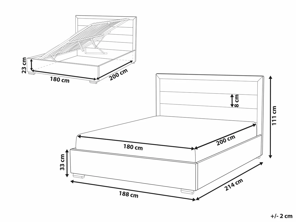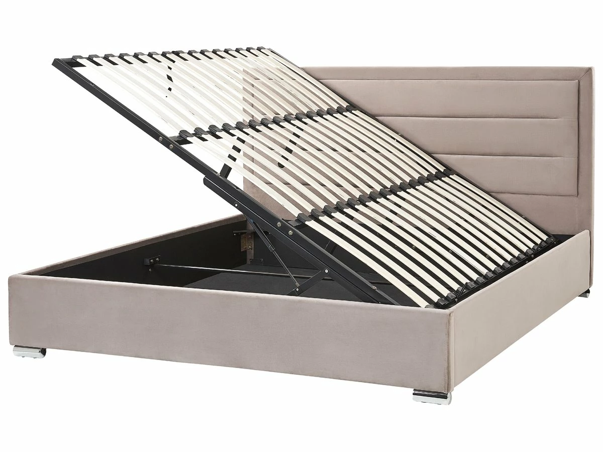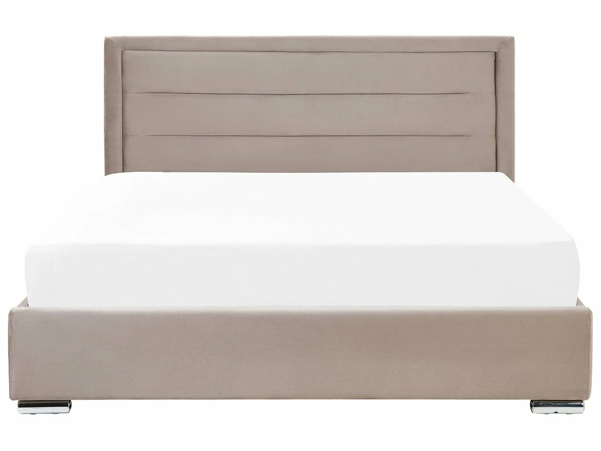 Cama de diseño moderno. Añade un toque de modernidad a tu dormitorio con esta cama. Está fabricada a partir de terciopelo resistente y de alta calidad. El cabecero acolchado y el material utilizado en su elaboración llaman poderosamente la atención. Incluye un amplio espacio de almacenaje donde guardar la ropa de cama. Detalles: Tipo de Producto: Cama matrimonial Estilo: Moderno Color: Beige Tonalidad: Gris pardo Tipo de material: Poliéster aterciopelado Material principal: Terciopelo Material adicional: Madera contrachapada Material del almacenamiento: Tela no tejida Composición del Material: 100% Poliéster Parte posterior tapizada: No Tipo de almacenamiento: Elevado Almacenamiento: Sí Dimensiones: Dimensiones del reposacabezas: 188×106 Ancho: 188 cm Dimensiones del almacenamiento: 180x200x23 Longitud: 214 cm Altura: 111 cm Superficie para dormir: 180×200 cm Peso: 75 kg Capacidad de peso: 350 kg La oferta incluye: 1 x Somier (30 listones flexibles, 1 x Marco de cama con almacenamiento, No incluye: colchón y ropa de cama Ventajas: Distribución uniforme del peso corporal, Muy cómodo, Diseño moderno, Acolchado de alta calidad, Solida estructura, Práctico espacio de almacenaje para todos tus accesorios Información de montaje: Requiere montaje completo. 45-60 min. Información adicional: Tenga en cuenta que la tela de terciopelo puede verse un poco diferente cuando se expone a una iluminación diferente: tiende a brillar más a la luz del día y parece más atenuada en la iluminación artificial interior. Debido a la estructura suave de alta densidad, el tono de la tela de terciopelo también puede variar cuando se pasa la mano en diferentes direcciones y ángulos. Para igualar el color y eliminar las arrugas, el material debe limpiarse con la palma de mano abierta en una dirección, limpiarse con un paño húmedo o una plancha con vapor. Consejos de mantenimiento: Terciopelo: 1.Limpiar con champú seco y una esponja húmeda o un limpiador suave 2.Aspire con un accesorio adecuado.