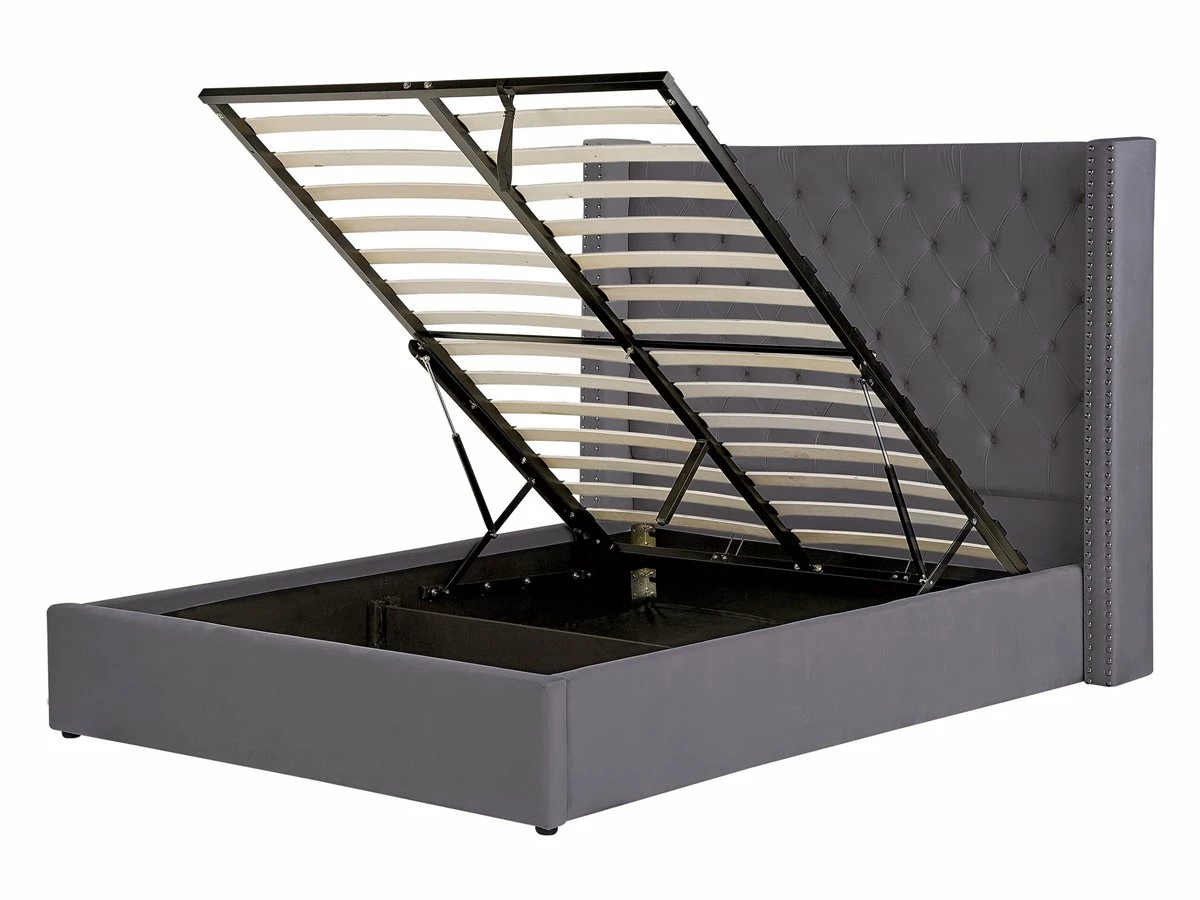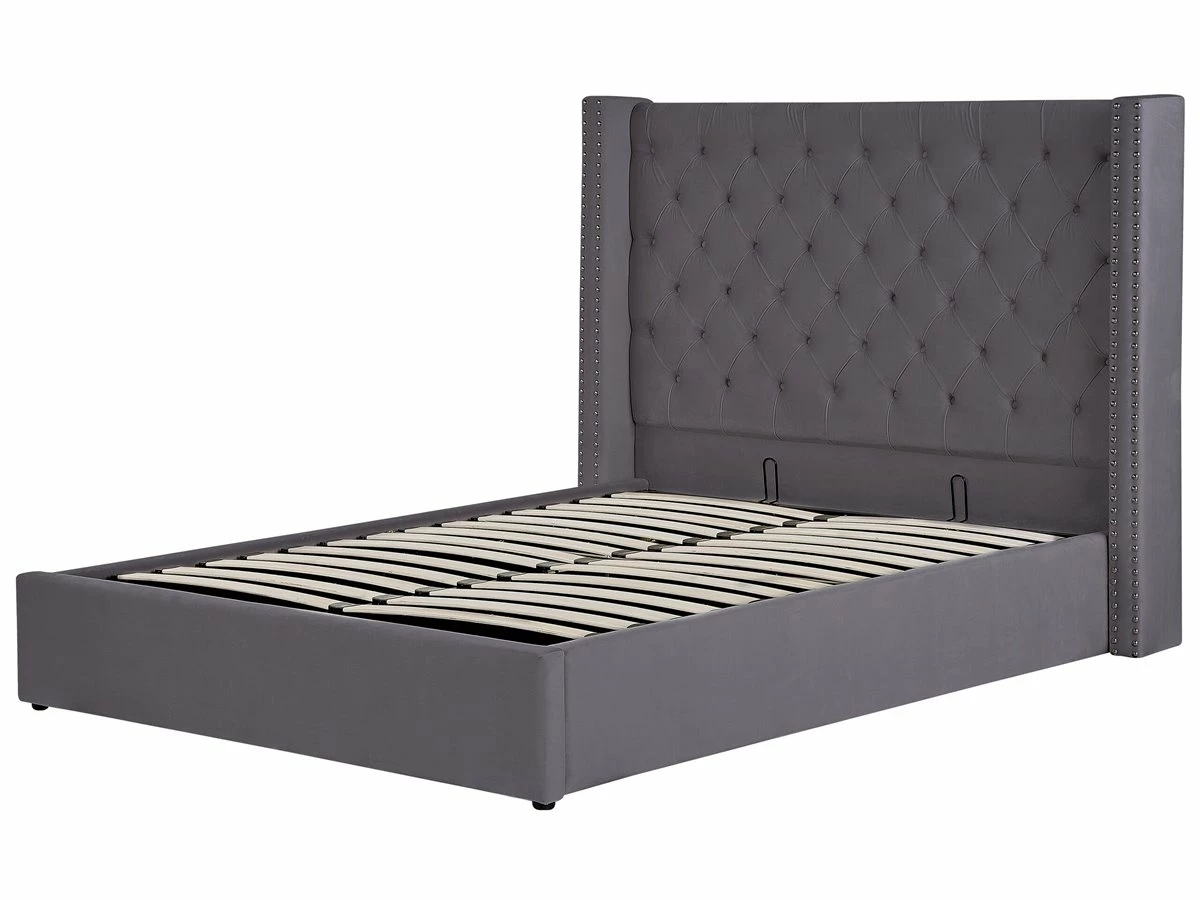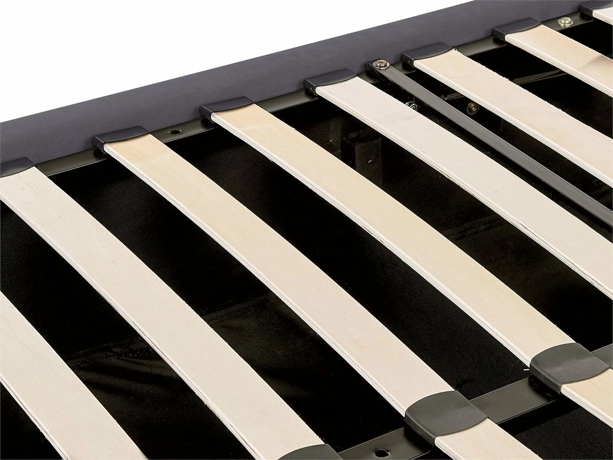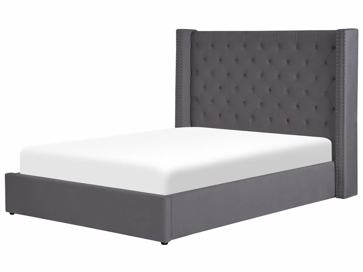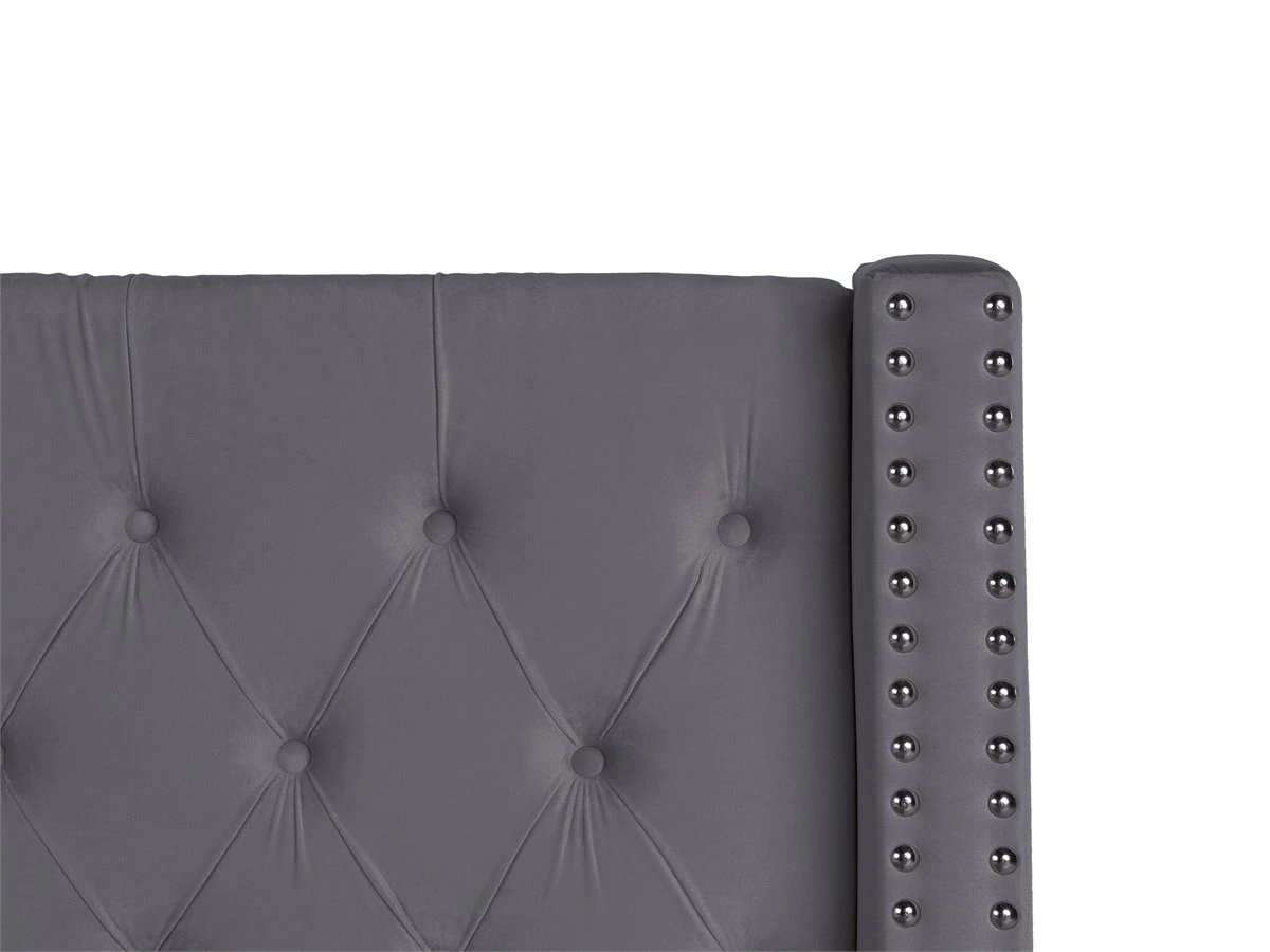 Cama de diseño glamuroso. Añade un toque de glamour a tu dormitorio con esta cama con somier. Está fabricada a partir de terciopelo de alta calidad. Los botones decorativos y las tachuelas en el cabecero combinan bien con las patas. Ideal para interiores retro o contemporáneos. Incluye un espacio de almacenaje con ruedas donde guardar la ropa de cama. Detalles: Tipo de Producto: Cama matrimonial Estilo: Retro Color: Plateado Tonalidad: Rosa pastel Tipo de material: Poliéster aterciopelado Material principal: Terciopelo Material adicional: Madera de pino Material del almacenamiento: Tela no tejida Composición del Material: 100% Poliéster Parte posterior tapizada: No Tipo de almacenamiento: Elevado Almacenamiento: Sí Dimensiones: Dimensiones del reposacabezas: 154×141 Ancho: 170 cm Dimensiones del almacenamiento: 142x199x23 Longitud: 217 cm Altura: 144 cm Superficie para dormir: 140×200 cm Peso: 59 kg Capacidad de peso: 150 kg La oferta incluye: 1 x Marco de cama con almacenamiento, 1 x Somier (28 listones flexibles, No incluye: colchón y ropa de cama Ventajas: La base de listones que absorbe los golpes proporciona un soporte perfecto, Elegante pieza decorativa, Acabado con remaches que enfatizan la forma del mueble, Combinación perfecta de colores y materiales, Estructura duradera y sólida, Completamente tapizado, Espacio de almacenamiento funcional Información de montaje: Requiere montaje completo. 45-60 min. Información adicional: La altura del colchón visible en la imagen es de 20 cm. Tenga en cuenta que la tela de terciopelo puede verse un poco diferente cuando se expone a una iluminación diferente: tiende a brillar más a la luz del día y parece más atenuada en la iluminación artificial interior. Debido a la estructura suave de alta densidad, el tono de la tela de terciopelo también puede variar cuando se pasa la mano en diferentes direcciones y ángulos. Para igualar el color y eliminar las arrugas, el material debe limpiarse con la palma de mano abierta en una dirección, limpiarse con un paño húmedo o una plancha con vapor. Consejos de mantenimiento: Terciopelo: 1.Aspire con un accesorio adecuado 2.Limpiar con champú seco y una esponja húmeda o un limpiador suave.