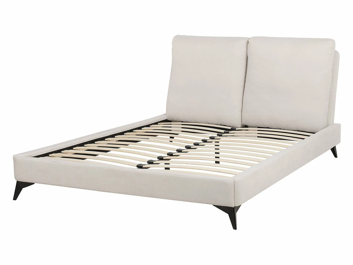 Cama de diseño moderno. Añade elegancia a tu dormitorio con esta cama con somier de diseño contemporáneo. Está fabricada a partir de chenilla de alta calidad. El cabecero acolchado con forma de almohada aporta exclusividad en el diseño. Las patas de tamaño reducido garantizan resistencia y estabilidad. Detalles: Tipo de Producto: Cama matrimonial Estilo: Glamour Color: Beige Tipo de material: Tejido Material principal: Chenilla Material adicional: Madera contrachapada Composición del Material: 100% Poliéster Parte posterior tapizada: No Dimensiones: Dimensiones del reposacabezas: 145x28x6 Ancho: 155 cm Longitud: 240 cm Altura: 98 cm Superficie para dormir: 140×200 cm Peso: 37 kg Capacidad de peso: 250 kg La oferta incluye: 1 x Estructura de cama, 1 x Somier (26 listones flexibles, No incluye: colchón y ropa de cama Ventajas: Apto para cualquier tipo de colchón, Combina con todo tipo de decoración, Acolchado de alta calidad, Estructura duradera y sólida, Cojines de respaldo con fundas extraíbles Información de montaje: Requiere montaje completo. 45-60 min. Información adicional: La altura del colchón visible en la imagen es de 20 cm. Consejos de mantenimiento: Chenilla: 1.Limpiar con champú seco y una esponja húmeda o un limpiador suave 2.Aspire con un accesorio adecuado. Madera de álamo: 1.Limpie con un limpiador y un paño suave en la dirección del grano 2.Los muebles con acabado de aceite deben engrasarse una vez al año, 3.Seque inmediatamente después de limpiar. para evitar que se acumule agua en los muebles.