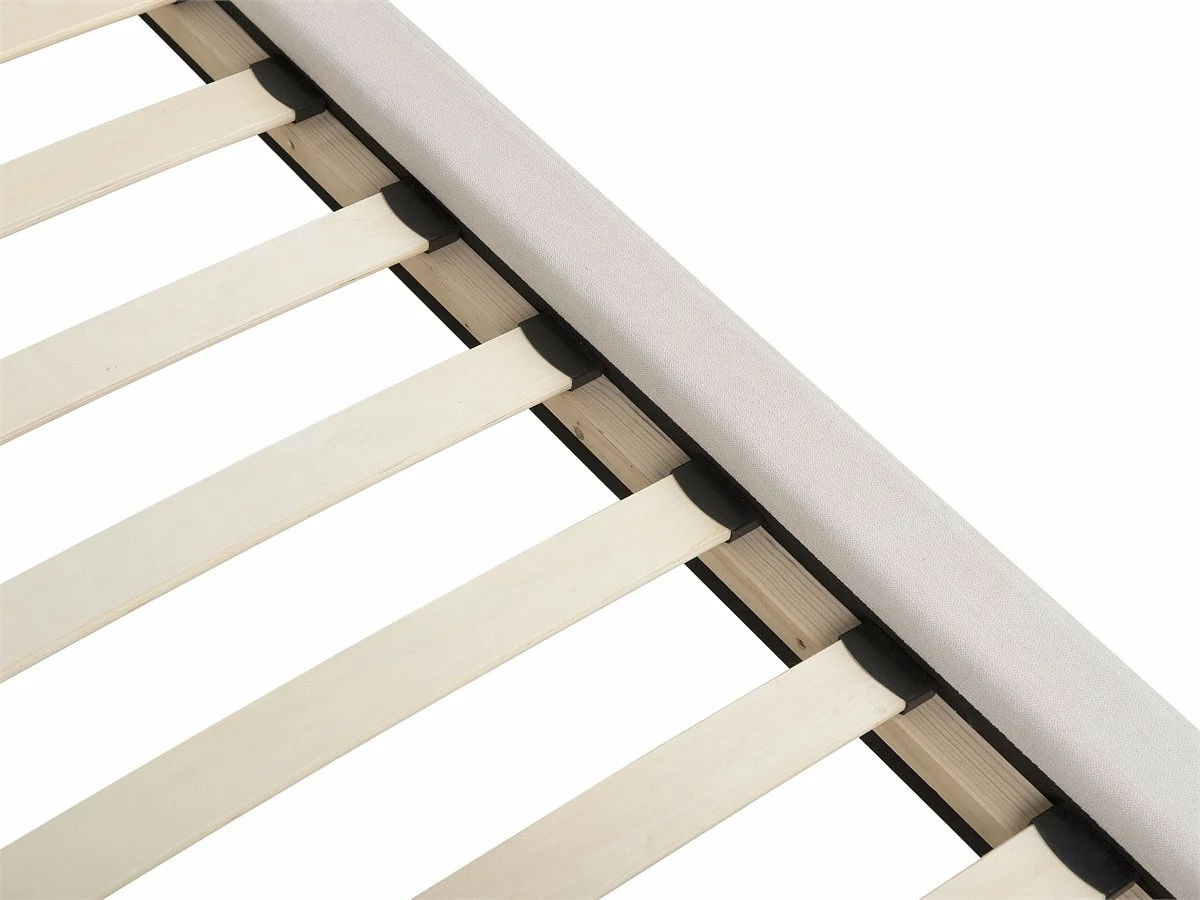 Cama de diseño moderno. Añade elegancia a tu dormitorio con esta cama con somier de diseño contemporáneo. Está fabricada a partir de chenilla de alta calidad. El cabecero acolchado con forma de almohada aporta exclusividad en el diseño. Las patas de tamaño reducido garantizan resistencia y estabilidad. Detalles: Tipo de Producto: Cama matrimonial Estilo: Glamour Color: Beige Tonalidad: Beige claro Tipo de material: Poliéster aterciopelado Material principal: Chenilla Material adicional: Madera contrachapada Composición del Material: 100% Poliéster Parte posterior tapizada: No Dimensiones: Dimensiones del reposacabezas: 186×82 Ancho: 195 cm Longitud: 240 cm Altura: 98 cm Superficie para dormir: 180×200 cm Peso: 46 kg Capacidad de peso: 250 kg La oferta incluye: 1 x Somier (42 listones flexibles, 1 x Estructura de cama, 2 x Cojín Ventajas: Apto para cualquier tipo de colchón, Combina con todo tipo de decoración, Acolchado de alta calidad, Estructura duradera y sólida, Cojines de respaldo con fundas extraíbles Información de montaje: Requiere montaje completo. 45-60 min. Información adicional: La altura del colchón visible en la imagen es de 20 cm. Consejos de mantenimiento: Chenilla: 1.Aspire con un accesorio adecuado 2.Limpiar con champú seco y una esponja húmeda o un limpiador suave. Madera de álamo: 1.Limpie con un limpiador y un paño suave en la dirección del grano 2.Los muebles con acabado de aceite deben engrasarse una vez al año, 3.Seque inmediatamente después de limpiar. para evitar que se acumule agua en los muebles.