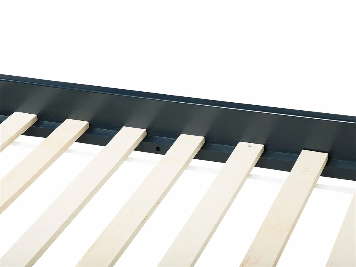 Cama de estilo escandinavo. Esta cama con somier combina bien en cualquier dormitorio tradicional, escandinavo o costero. Está fabricada a partir de madera de pino de alta calidad. El somier de listones garantiza un sueño saludable y proporciona soporte al colchón. El cabecero y el pie de cama de diseño retro encajan bien con las patas de estilo minimalista. Detalles: Tipo de Producto: Cama matrimonial Estilo: Moderno Color: Azul Tonalidad: Azul oscuro Tipo de material: Madera maciza Material principal: Madera de pino Material adicional: MDF Parte posterior tapizada: No Acabado: Pintado Dimensiones: Dimensiones del reposacabezas: 149×50 Ancho: 148 cm Longitud: 208 cm Altura: 92 cm Superficie para dormir: 140×200 cm Peso: 34 kg Capacidad de peso: 200 kg La oferta incluye: 1 x Somier (32 listones, 1 x Estructura de cama, No incluye: colchón y ropa de cama Ventajas: La base de listones que absorbe los golpes proporciona un soporte perfecto, Espaciosa superficie para dormir, Ideal para todo tipo de decoración, Estilo escandinavo minimalista, Estructura duradera y sólida Información de montaje: Requiere montaje completo. 45-60 min. Información adicional: La altura del colchón visible en la imagen es de 20 cm. La madera es un material natural, lo que permite conservar su estructura natural y el carácter único de la superficie también después de pintarlo Consejos de mantenimiento: Madera de pino: 1.Seque inmediatamente después de limpiar. para evitar que se acumule agua en los muebles 2.Limpie con un limpiador y un paño suave en la dirección del grano 3.Los muebles con acabado de aceite deben engrasarse una vez al año