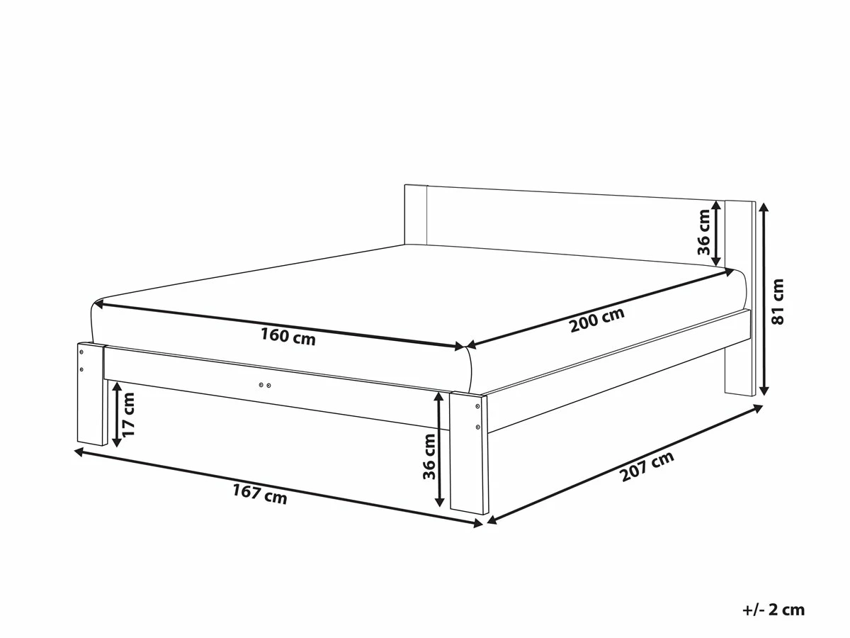 Cama de estilo minimalista. Esta cama con somier combina bien en un dormitorio de estilo boho, minimalista o escandinavo. Está fabricada a partir de madera de pino de alta calidad. El somier de listones proporciona soporte al colchón. Añade un aspecto acogedor y un cierto encanto a cualquier interior. Detalles: Tipo de Producto: Cama matrimonial Estilo: Boho Color: Madera clara Tipo de material: Madera maciza Material principal: Madera de pino Material adicional: Madera contrachapada Parte posterior tapizada: No Acabado: Aceitado Dimensiones: Dimensiones del reposacabezas: 162×40 Ancho: 167 cm Longitud: 207 cm Altura: 81 cm Superficie para dormir: 160×200 cm Peso: 51 kg Capacidad de peso: 200 kg La oferta incluye: 1 x Somier (32 listones, 1 x Estructura de cama, 1 x Cabecero, No incluye: colchón y ropa de cama Ventajas: Espaciosa superficie para dormir, Estilo escandinavo minimalista, El complemento ideal para todo tipo de decoracíon, Muy fácil de conservar, Solida estructura Información de montaje: Requiere montaje completo. 45-60 min. Información adicional: La altura del colchón visible en la imagen es de 20 cm. Consejos de mantenimiento: Madera de pino: 1.Los muebles con acabado de aceite deben engrasarse una vez al año, 2.Seque inmediatamente después de limpiar. para evitar que se acumule agua en los muebles 3.Limpie con un limpiador y un paño suave en la dirección del grano.