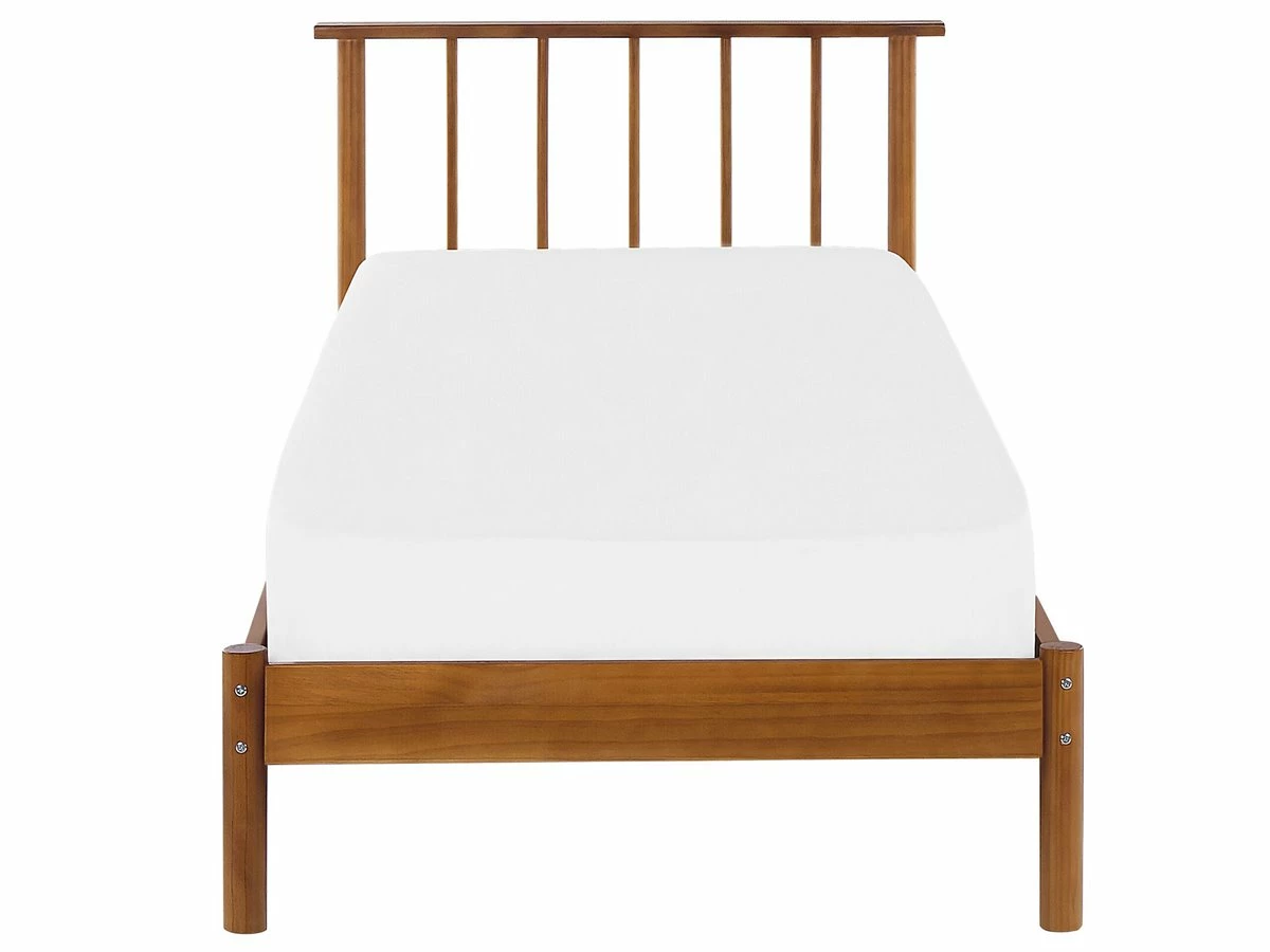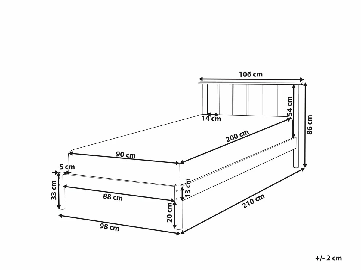 Cama de estilo minimalista. Esta cama con somier combina bien con dormitorios de estilo tradicional, rústico o escandinavo. Está fabricada a partir de madera de pino de alta calidad. El somier de láminas y las 4 patas resistentes ofrecen la máxima estabilidad. Los listones verticales en el cabecero completan el diseño final. Detalles: Tipo de Producto: Cama individual Estilo: Escandinavo Color: Madera clara Tipo de material: Madera maciza Material principal: Madera de pino Material adicional: Madera contrachapada Parte posterior tapizada: No Acabado: Pintado Dimensiones: Dimensiones del reposacabezas: 106×54 Ancho: 106 cm Longitud: 210 cm Altura: 86 cm Superficie para dormir: 90×200 cm Peso: 20 kg Capacidad de peso: 200 kg La oferta incluye: 1 x Estructura de cama, 1 x Somier (16 listones, No incluye: colchón y ropa de cama Ventajas: Apto para cualquier tipo de colchón, El marco integrado garantiza la máxima estabilización, Los nudos y vetas de madera natural hacen que cada pieza sea única, Diseño atemporal, Fabricación sólida y precisa Información de montaje: Requiere montaje completo. 45-60 min. Información adicional: La altura del colchón visible en la imagen es de 20 cm. Consejos de mantenimiento: Madera de pino: 1.Los muebles con acabado de aceite deben engrasarse una vez al año, 2.Seque inmediatamente después de limpiar. para evitar que se acumule agua en los muebles 3.Limpie con un limpiador y un paño suave en la dirección del grano. Madera contrachapada: 1.Los muebles con acabado de aceite deben engrasarse una vez al año, 2.Seque inmediatamente después de limpiar. para evitar que se acumule agua en los muebles 3.Limpie con un limpiador y un paño suave en la dirección del grano.