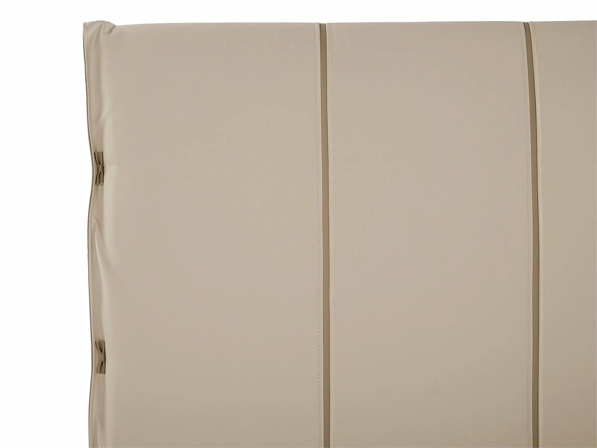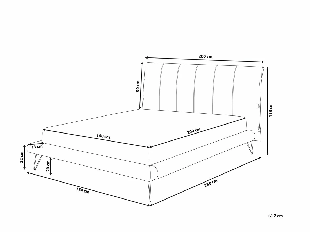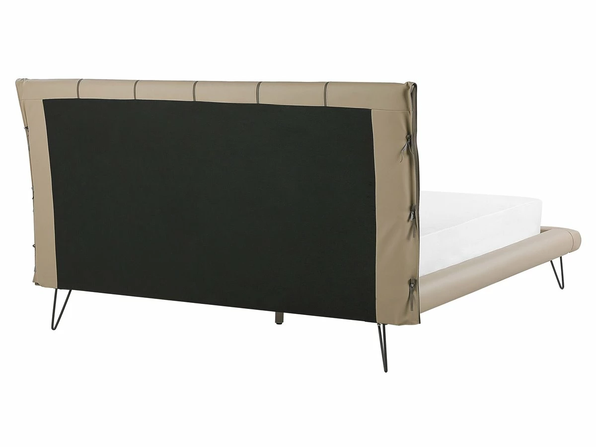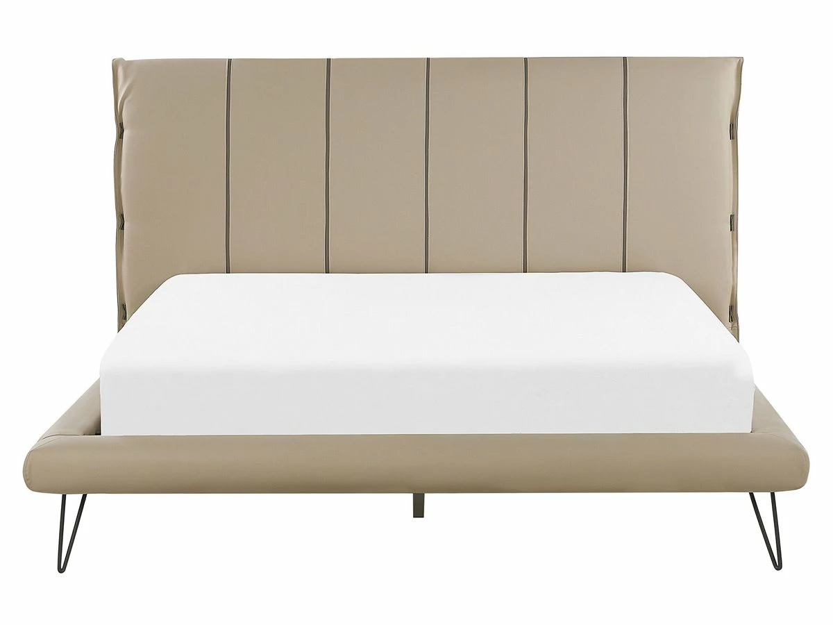 Cama de diseño moderno. Añade un toque contemporáneo a tu dormitorio con esta cama con somier. Está fabricada a partir de piel sintética de alta calidad. El acolchado del cabecero ofrece la mayor comodidad para leer un libro o ver la TV. Las patas de metal de inspiración industrial aportan un toque de distinción. Combina bien con la mesa de noche y el banco a juego. Detalles: Tipo de Producto: Cama matrimonial Estilo: Moderno Color: Beige Tonalidad: Arena Tipo de material: Piel sintética Material principal: Piel sintética Material adicional: Metal Composición del Material: 100% Poliéster Parte posterior tapizada: No Dimensiones: Dimensiones del reposacabezas: 200×98 Ancho: 230 cm Longitud: 200 cm Altura: 118 cm Superficie para dormir: 160×200 cm Peso: 44 kg Capacidad de peso: 350 kg La oferta incluye: 1 x Estructura de cama, 1 x Somier (26 listones flexibles, No incluye: colchón y ropa de cama Ventajas: Apto para cualquier tipo de colchón, La base de listones que absorbe los golpes proporciona un soporte perfecto, Diseño moderno, Con acolchado vertical decorativo, Tapicería de piel sintética de alta calidad para un aspecto natural Información de montaje: Requiere montaje completo. 20-40 min. Información adicional: La altura del colchón visible en la imagen es de 20 cm. Consejos de mantenimiento: Piel sintética: 1.Use solo limpiadores suaves y acondicionadores dedicados a la piel sintética, 2.Limpie con agua destilada y use limpiadores a base de jabón en las manchas difíciles 3.Aspire con un accesorio adecuado 4.Una vez a la semana, limpie con un paño húmedo y seque después. No engrasar Metal: 1.Para evitar arañazos, no use limpiadores abrasivos 2.Limpie con un limpiador y un paño suave, seque después 3.Para elementos de cobre o cromados, use agente abrillantador.