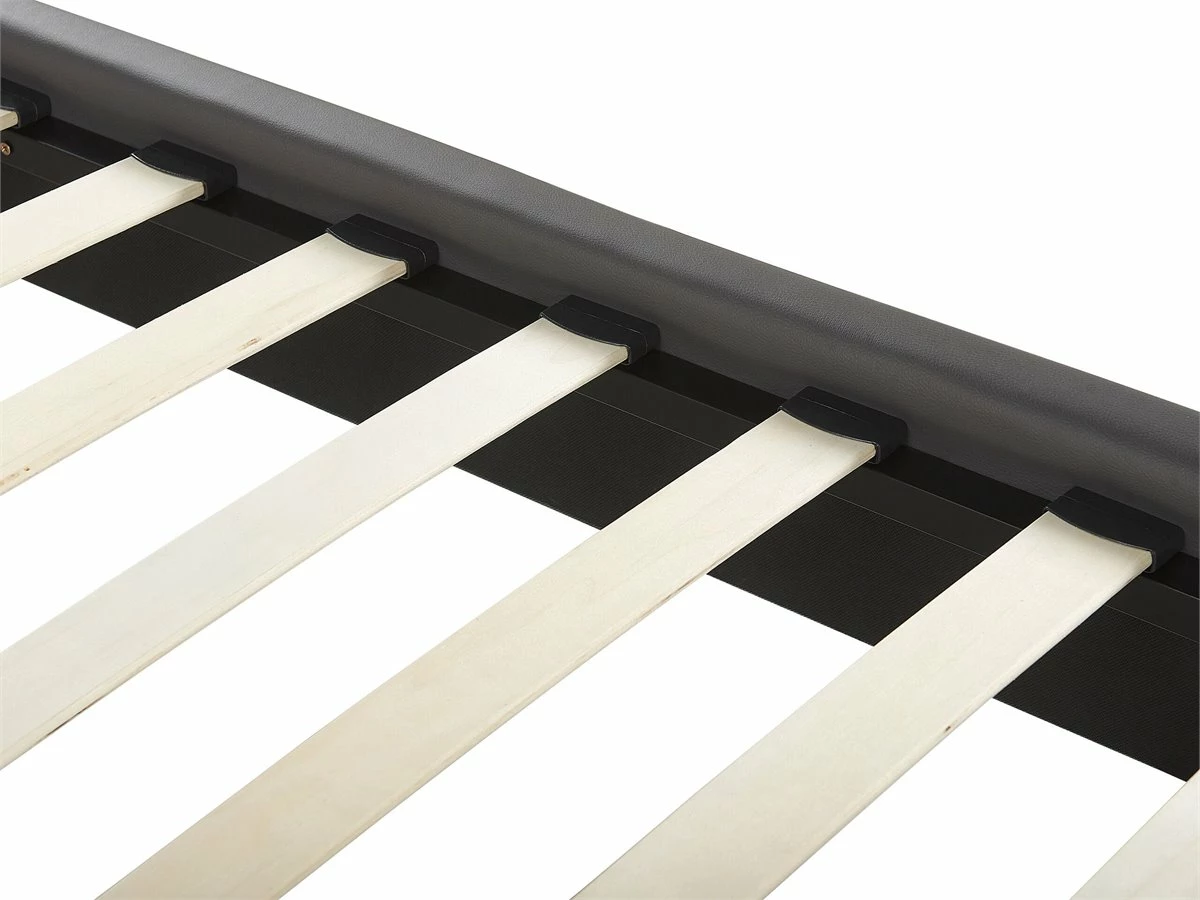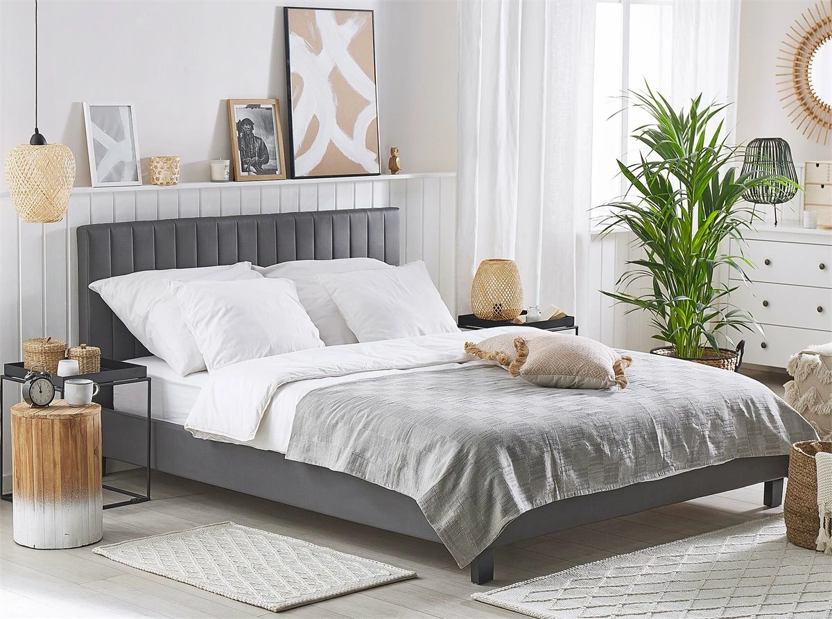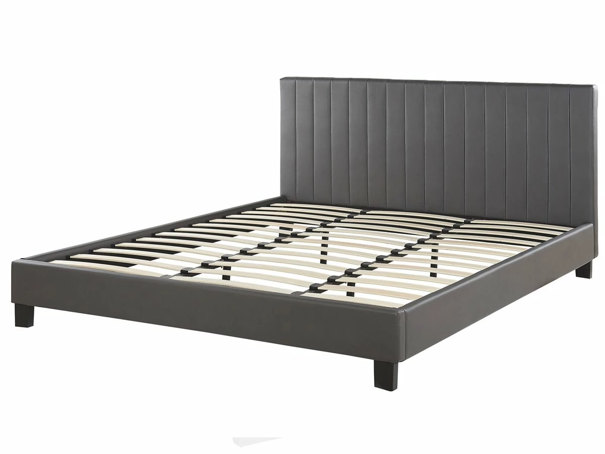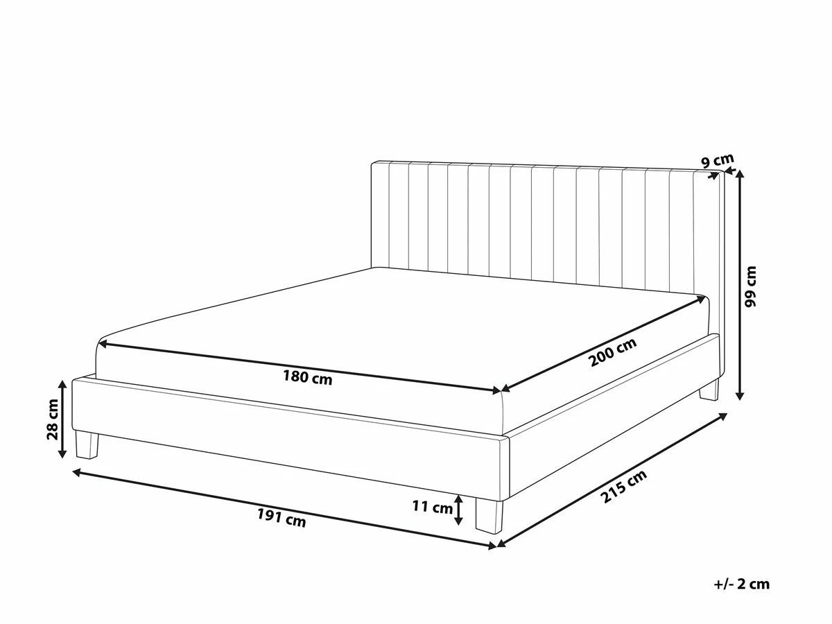 Cama de diseño moderno. Añade un toque de modernidad a tu dormitorio con esta cama con somier. Está fabricada a partir de piel sintética de alta calidad y bajo mantenimiento. El somier de listones garantiza un sueño saludable y proporciona soporte al colchón. El cabecero decorativo ofrece comodidad y las patas de metal complementan el estilo. Detalles: Tipo de Producto: Cama matrimonial Estilo: Moderno Color: Gris Tipo de material: Piel sintética Material principal: Piel sintética Material adicional: Madera contrachapada Composición del Material: 100% Poliéster Parte posterior tapizada: No Dimensiones: Dimensiones del reposacabezas: 191×88 Ancho: 191 cm Longitud: 215 cm Altura: 99 cm Superficie para dormir: 180×200 cm Peso: 35 kg Capacidad de peso: 300 kg La oferta incluye: 1 x Estructura de cama, 1 x Somier (39 listones flexibles, No incluye: colchón y ropa de cama Ventajas: Distribución uniforme del peso corporal, Espaciosa superficie para dormir, Diseño moderno, Acolchado de alta calidad, No requiere mantenimiento regular, Estructura sólida y estable Información de montaje: Requiere montaje completo. 20-40 min. Información adicional: La altura del colchón visible en la imagen es de 20 cm. Consejos de mantenimiento: Piel sintética: 1.Use solo limpiadores suaves y acondicionadores dedicados a la piel sintética, 2.Limpie con agua destilada y use limpiadores a base de jabón en las manchas difíciles 3.Aspire con un accesorio adecuado 4.Una vez a la semana, limpie con un paño húmedo y seque después. No engrasar