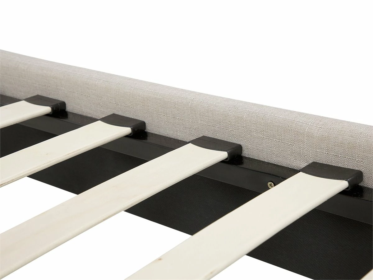 Cama de estilo minimalista. Añade a tu dormitorio esta cama con somier de estilo minimalista. El diseño moderno y universal combina bien con cualquier decoración de interior. Está fabricada a partir de tela de poliéster con apariencia de lino. El somier de listones de madera garantiza un sueño saludable y una distribución uniforme del peso. Su diseño sin cabecero aporta un toque de distinción. Detalles: Tipo de Producto: Cama matrimonial Estilo: Moderno Color: Gris Tipo de material: Tejido Material principal: Poliéster Material adicional: Madera contrachapada Composición del Material: 100% Poliéster Parte posterior tapizada: No Dimensiones: Ancho: 149 cm Longitud: 211 cm Altura: 29 cm Superficie para dormir: 140×200 cm Peso: 20 kg Capacidad de peso: 300 kg La oferta incluye: 1 x Estructura de cama, 1 x Somier (26 listones flexibles, No incluye: colchón y ropa de cama Ventajas: Apto para cualquier tipo de colchón, La base de listones que absorbe los golpes proporciona un soporte perfecto, Estilo escandinavo minimalista, Estructura duradera y sólida, Acolchado de alta calidad Información de montaje: Requiere montaje completo. Más de 60 min. Información adicional: La altura del colchón visible en la imagen es de 20 cm. Consejos de mantenimiento: Poliéster: 1.Aspire con un accesorio adecuado 2.Limpiar con champú seco y una esponja húmeda o un limpiador suave. Madera: 1.Los muebles con acabado de aceite deben engrasarse una vez al año, 2.Seque inmediatamente después de limpiar. para evitar que se acumule agua en los muebles 3.Limpie con un limpiador y un paño suave en la dirección del grano.