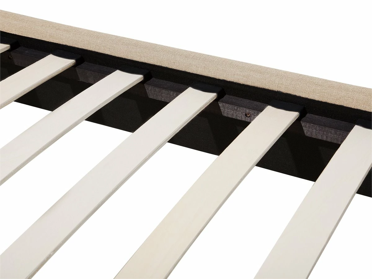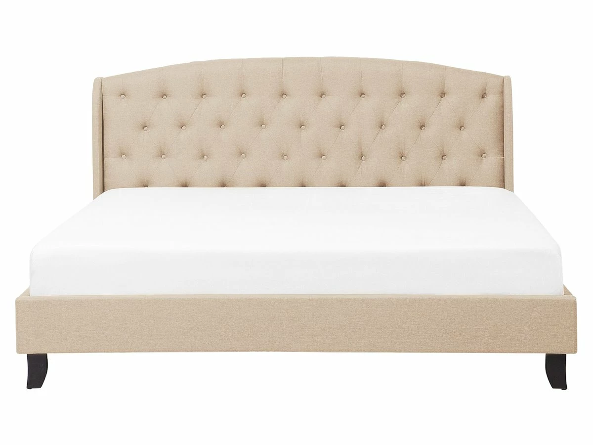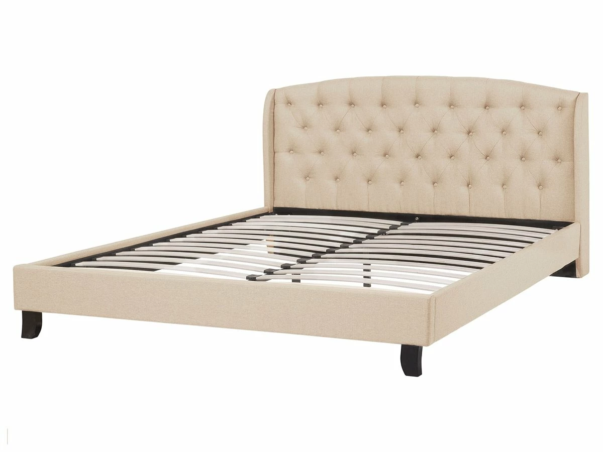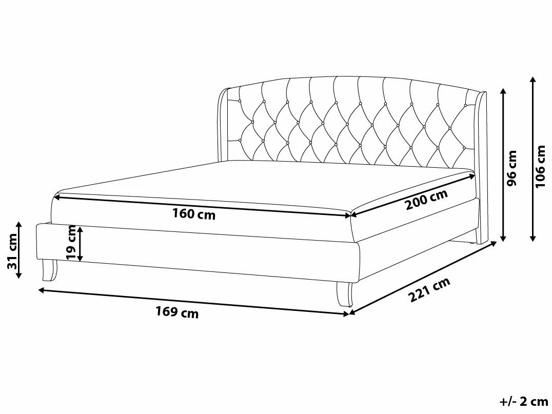 Cama de diseño moderno. Añade a tu dormitorio esta cama con somier de estilo moderno. Está fabricada a partir de tela de poliéster de alta calidad. El diseño minimalista combina a la perfección con el capitoné decorativo. Las patas garantizan la máxima estabilidad. Detalles: Tipo de Producto: Cama matrimonial Estilo: Glamour Color: Beige Tipo de material: Tejido Material principal: Poliéster Material adicional: Madera de eucalipto Composición del Material: 100% Poliéster Parte posterior tapizada: No Dimensiones: Dimensiones del reposacabezas: 169×106 Ancho: 169 cm Longitud: 221 cm Altura: 106 cm Superficie para dormir: 160×200 cm Peso: 47 kg Capacidad de peso: 200 kg La oferta incluye: 1 x Estructura de cama, 1 x Somier (26 listones flexibles, No incluye: colchón y ropa de cama Ventajas: La base de listones que absorbe los golpes proporciona un soporte perfecto, Distribución uniforme del peso corporal, Espaciosa superficie para dormir, Diseño tradicional con un toque moderno, Combinación perfecta de colores y materiales, Acolchado con botones decorativos Información de montaje: Requiere montaje completo. 45-60 min. Información adicional: La altura del colchón visible en la imagen es de 20 cm. Consejos de mantenimiento: Poliéster: 1.Aspire con un accesorio adecuado 2.Limpiar con champú seco y una esponja húmeda o un limpiador suave. Madera: 1.Limpie con un limpiador y un paño suave en la dirección del grano 2.Los muebles con acabado de aceite deben engrasarse una vez al año, 3.Seque inmediatamente después de limpiar. para evitar que se acumule agua en los muebles.