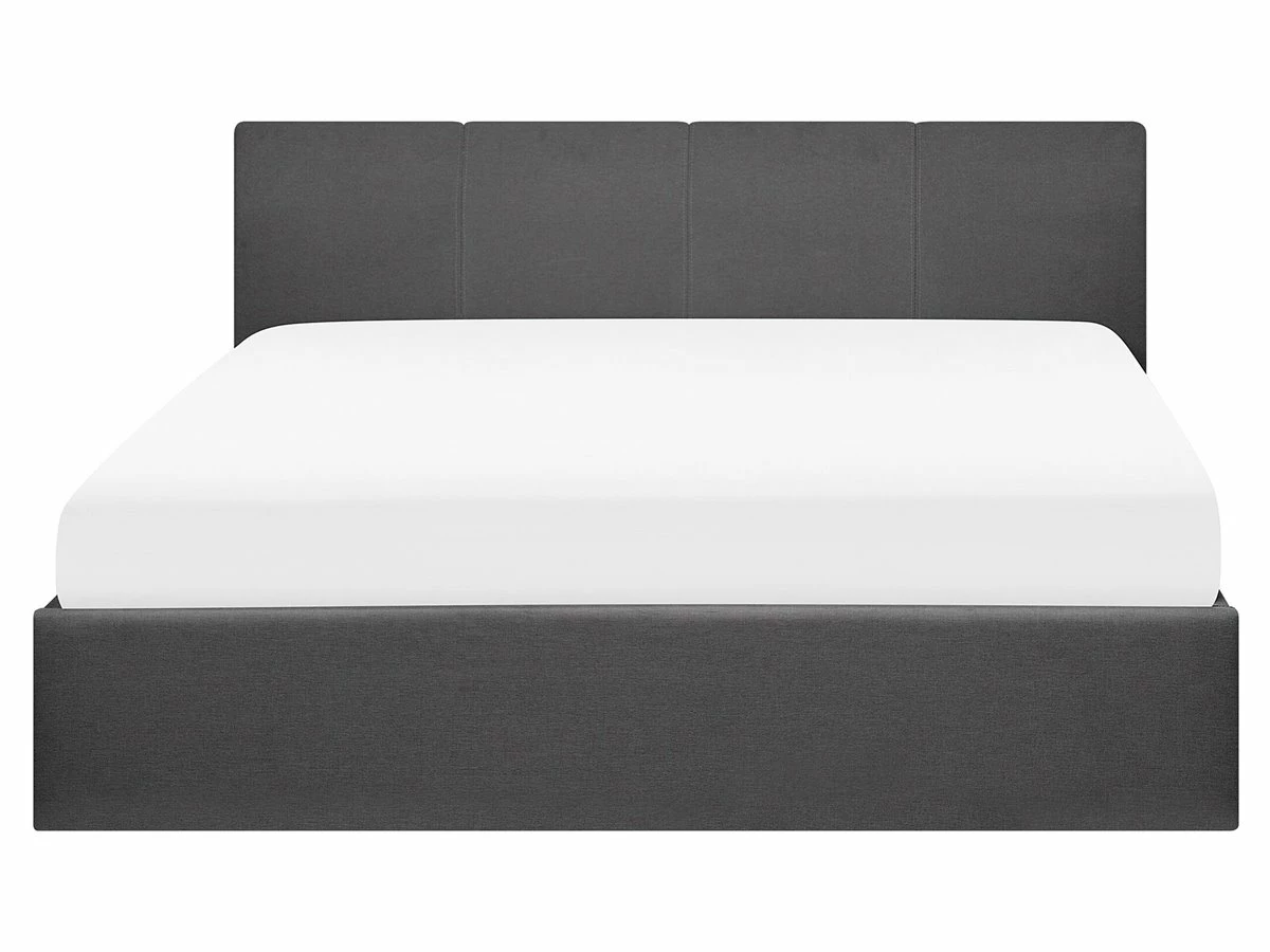 Cama con almacenaje. Añade modernidad y funcionalidad a tu dormitorio con esta cama con somier. Está fabricada a partir de tela de poliéster de alta calidad. El tapizado en el cabecero aporta un toque acogedor al diseño. Incluye un amplio espacio de almacenaje donde guardar la ropa de cama. Detalles: Tipo de Producto: Cama matrimonial Estilo: Moderno Color: Gris Tipo de material: Tejido Material principal: Poliéster Material adicional: Metal Material del almacenamiento: Tela no tejida Composición del Material: 100% Poliéster Parte posterior tapizada: No Tipo de almacenamiento: Elevado Almacenamiento: Sí Dimensiones: Dimensiones del reposacabezas: 177×88 Ancho: 177 cm Dimensiones del almacenamiento: 160x200x23 Longitud: 212 cm Altura: 88 cm Superficie para dormir: 160×200 cm Peso: 49 kg Capacidad de peso: 300 kg La oferta incluye: 1 x Marco de cama con almacenamiento, 1 x Somier (26 listones flexibles, No incluye: colchón y ropa de cama Ventajas: Diseño moderno, Combina con todo tipo de decoración, Acolchado de alta calidad, Estructura duradera y sólida, El mecanismo de elevación neumático garantiza un fácil acceso al espacio de almacenamiento Información de montaje: Requiere montaje completo. Más de 60 min. Información adicional: La altura del colchón visible en la imagen es de 20 cm. Consejos de mantenimiento: Poliéster: 1.Aspire con un accesorio adecuado 2.Limpiar con champú seco y una esponja húmeda o un limpiador suave.