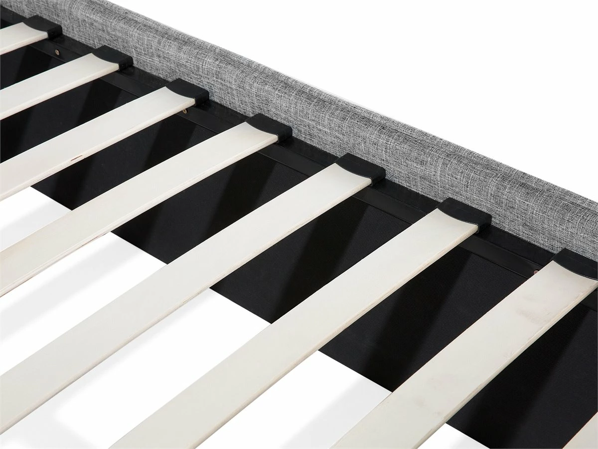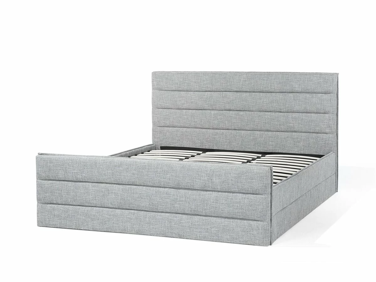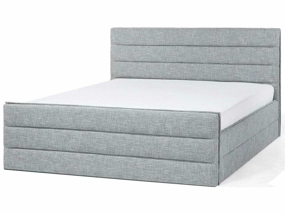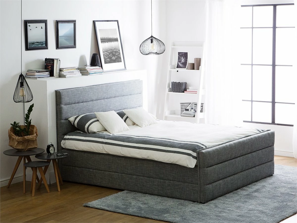 Cama de diseño moderno. Añade elegancia y funcionalidad a tu dormitorio con esta cama con somier. Está fabricada a partir de tela de poliéster de alta calidad. Las líneas horizontales en el cabecero y en el pie de cama aportan un toque de modernidad. El estilo definido combina bien con cualquier interior. Detalles: Tipo de Producto: Cama matrimonial Estilo: Moderno Color: Gris Tonalidad: Gris oscuro Tipo de material: Tejido Material principal: Poliéster Material adicional: Material sintético Composición del Material: 85% Poliéster Parte posterior tapizada: No Dimensiones: Dimensiones del reposacabezas: 191×114 Ancho: 216 cm Longitud: 191 cm Altura: 114 cm Superficie para dormir: 180×200 cm Peso: 58 kg Capacidad de peso: 300 kg La oferta incluye: 1 x Estructura de cama, 1 x Somier (39 listones flexibles, No incluye: colchón y ropa de cama Ventajas: Ancha superficie del asiento, Ideal para todo tipo de decoración, Diseño moderno, Acolchado de alta calidad, No requiere mantenimiento regular, Estructura duradera y sólida Información de montaje: Requiere montaje completo. 20-40 min. Información adicional: La altura del colchón visible en la imagen es de 20 cm. Consejos de mantenimiento: Poliéster: 1.Limpiar con champú seco y una esponja húmeda o un limpiador suave 2.Aspire con un accesorio adecuado.