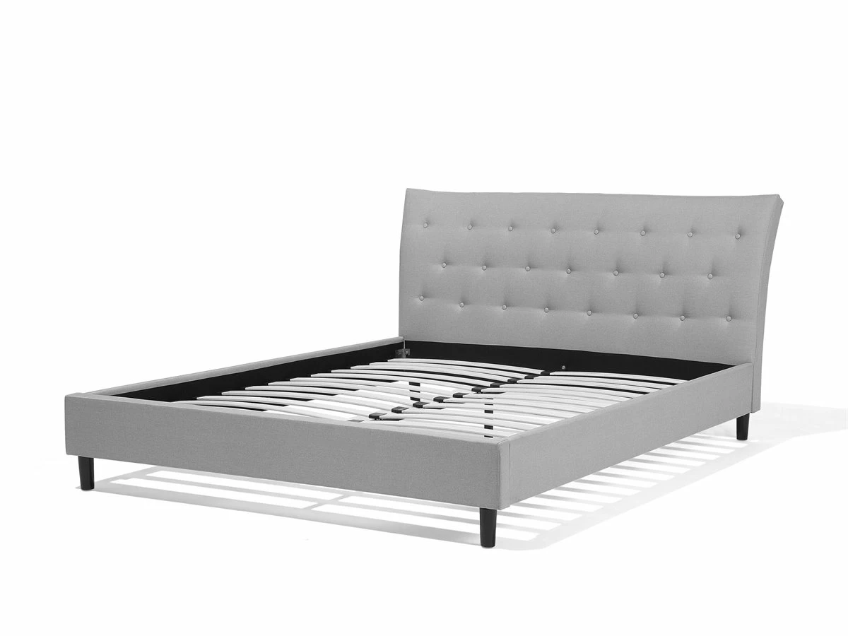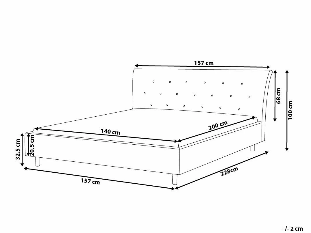 Cama de diseño moderno. Añade comodidad a tu dormitorio con esta cama con somier. Está fabricada a partir de tela de poliéster de alta calidad. El cabecero decorado con botones capitoné aporta una cierta elegancia al diseño. Combina bien con un estilo de decoración glamuroso o contemporáneo. Detalles: Tipo de Producto: Cama matrimonial Estilo: Moderno Color: Gris Tonalidad: Gris claro Tipo de material: Tejido Material principal: Poliéster Material adicional: Madera Composición del Material: 100% Poliéster Parte posterior tapizada: No Dimensiones: Dimensiones del reposacabezas: 157×88 Ancho: 157 cm Longitud: 228 cm Altura: 100 cm Superficie para dormir: 140×200 cm Peso: 35 kg Capacidad de peso: 150 kg La oferta incluye: 1 x Estructura de cama, 1 x Somier (26 listones flexibles, No incluye: colchón y ropa de cama Ventajas: Diseño tradicional con un toque moderno, Acolchado con botones decorativos, Acolchado de alta calidad, Estructura duradera y sólida, Muy fácil de conservar Información de montaje: Requiere montaje completo. 45-60 min. Información adicional: La altura del colchón visible en la imagen es de 20 cm. Consejos de mantenimiento: Poliéster: 1.Limpiar con champú seco y una esponja húmeda o un limpiador suave 2.Aspire con un accesorio adecuado. Madera: 1.Limpie con un limpiador y un paño suave en la dirección del grano 2.Los muebles con acabado de aceite deben engrasarse una vez al año, 3.Seque inmediatamente después de limpiar. para evitar que se acumule agua en los muebles.