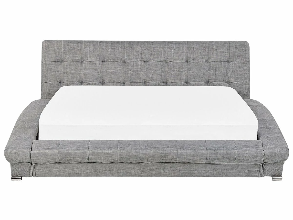 Cama de diseño glamuroso. Añade un toque de elegancia y glamour a tu dormitorio con esta cama con somier. Está fabricada a partir de tela de poliéster de alta calidad. La forma curva, el diseño capitoné y el cabecero acolchado aportan un toque de distinción. Detalles: Tipo de Producto: Cama matrimonial Estilo: Moderno Color: Gris Tipo de material: Tejido Material principal: Poliéster Material adicional: Metal Composición del Material: 100% Poliéster Parte posterior tapizada: Sí Acabado: Cromo Dimensiones: Dimensiones del reposacabezas: 221×88 Ancho: 221 cm Longitud: 260 cm Altura: 85 cm Superficie para dormir: 180×200 cm Peso: 104 kg Capacidad de peso: 250 kg La oferta incluye: 1 x Estructura de cama, 1 x Somier (48 listones flexibles, No incluye: colchón y ropa de cama Ventajas: Muy cómodo, Acolchado de alta calidad, Fabricación sólida y precisa, Apariencia moderna y calidad durante muchos años, Mantenimiento sencillo Información de montaje: Requiere montaje completo. 20-40 min. Información adicional: La altura del colchón visible en la imagen es de 20 cm. Consejos de mantenimiento: Poliéster: 1.Aspire con un accesorio adecuado 2.Limpiar con champú seco y una esponja húmeda o un limpiador suave.
