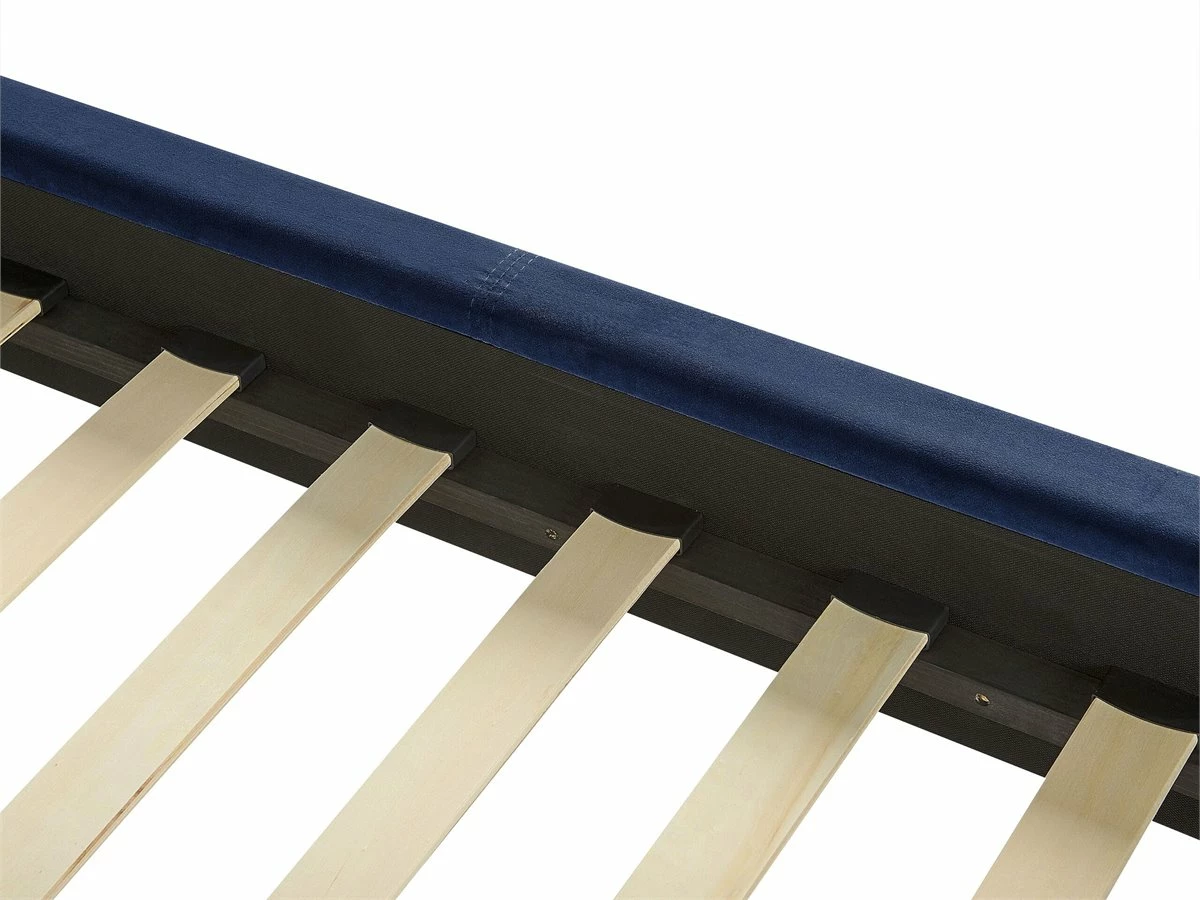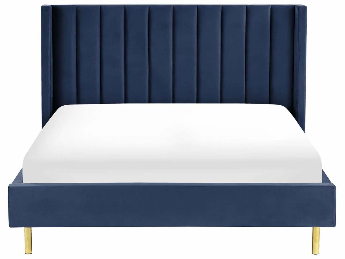 Cama de diseño moderno. Añade elegancia a tu dormitorio con esta cama con somier de diseño contemporáneo. Está fabricada a partir de terciopelo de alta calidad. Las líneas verticales en el cabecero aportan un toque de modernidad. Las patas de tamaño reducido garantizan resistencia y estabilidad. Detalles: Tipo de Producto: Cama matrimonial Estilo: Moderno Color: Azul Tonalidad: Azul marino Tipo de material: Poliéster aterciopelado Material principal: Terciopelo Material adicional: Metal Composición del Material: 100% Poliéster Parte posterior tapizada: No Dimensiones: Dimensiones del reposacabezas: 185×115 Ancho: 185 cm Longitud: 222 cm Altura: 115 cm Superficie para dormir: 160×200 cm Peso: 61 kg Capacidad de peso: 350 kg La oferta incluye: 1 x Estructura de cama, 1 x Somier (26 listones flexibles, No incluye: colchón y ropa de cama Ventajas: Muy cómodo, Diseño moderno, Apariencia elegante, Fabricación sólida y precisa, Mantenimiento sencillo Información de montaje: Requiere montaje completo. 45-60 min. Información adicional: La altura del colchón visible en la imagen es de 20 cm. Tenga en cuenta que la tela de terciopelo puede verse un poco diferente cuando se expone a una iluminación diferente: tiende a brillar más a la luz del día y parece más atenuada en la iluminación artificial interior. Debido a la estructura suave de alta densidad, el tono de la tela de terciopelo también puede variar cuando se pasa la mano en diferentes direcciones y ángulos. Para igualar el color y eliminar las arrugas, el material debe limpiarse con la palma de mano abierta en una dirección, limpiarse con un paño húmedo o una plancha con vapor. Consejos de mantenimiento: Terciopelo: 1.Aspire con un accesorio adecuado 2.Limpiar con champú seco y una esponja húmeda o un limpiador suave. Madera de álamo: 1.Seque inmediatamente después de limpiar. para evitar que se acumule agua en los muebles 2.Limpie con un limpiador y un paño suave en la dirección del grano 3.Los muebles con acabado de aceite deben engrasarse una vez al año