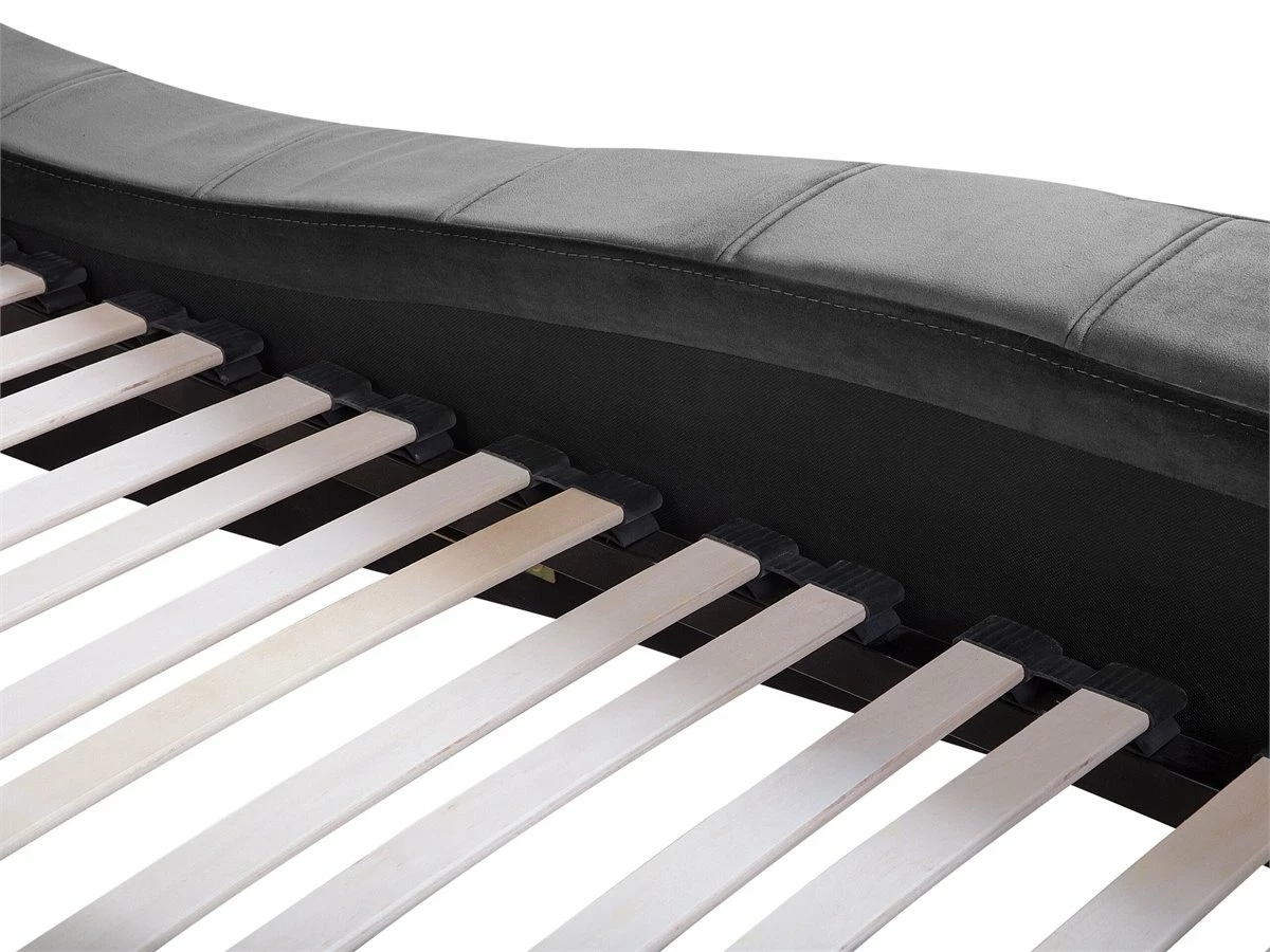 Cama de estilo contemporáneo. Añade un toque de distinción a tu dormitorio con esta cama con somier. Está fabricada a partir de terciopelo de alta calidad. El somier de láminas garantiza la postura correcta al descansar. La estructura aerodinámica y el cabecero acolchado proporcionan la máxima comodidad. Detalles: Tipo de Producto: Cama matrimonial Estilo: Moderno Color: Gris Tipo de material: Poliéster aterciopelado Material principal: Terciopelo Material adicional: Madera de álamo Composición del Material: 100% Poliéster Parte posterior tapizada: Sí Dimensiones: Dimensiones del reposacabezas: 213×70 Ancho: 213 cm Longitud: 255 cm Altura: 70 cm Superficie para dormir: 180×200 cm Peso: 79 kg Capacidad de peso: 250 kg La oferta incluye: 1 x Estructura de cama, 1 x Somier (48 listones flexibles, No incluye: colchón y ropa de cama Ventajas: El marco integrado garantiza la máxima estabilización, Espaciosa superficie para dormir, Diseño moderno, Acolchado de alta calidad, Construcción muy estable Información de montaje: Requiere montaje completo. 45-60 min. Información adicional: La altura del colchón visible en la imagen es de 20 cm. Tenga en cuenta que la tela de terciopelo puede verse un poco diferente cuando se expone a una iluminación diferente: tiende a brillar más a la luz del día y parece más atenuada en la iluminación artificial interior. Debido a la estructura suave de alta densidad, el tono de la tela de terciopelo también puede variar cuando se pasa la mano en diferentes direcciones y ángulos. Para igualar el color y eliminar las arrugas, el material debe limpiarse con la palma de mano abierta en una dirección, limpiarse con un paño húmedo o una plancha con vapor. Consejos de mantenimiento: Terciopelo: 1.Aspire con un accesorio adecuado 2.Limpiar con champú seco y una esponja húmeda o un limpiador suave.