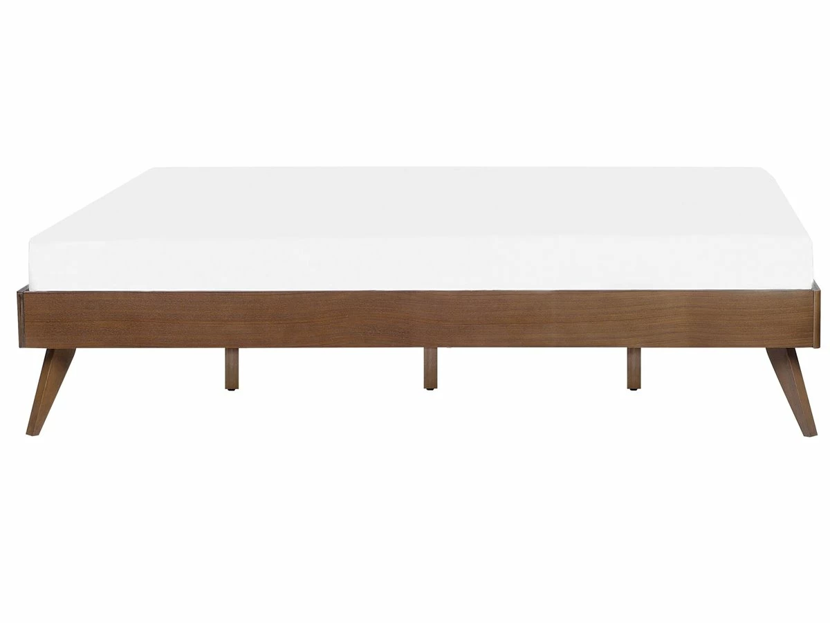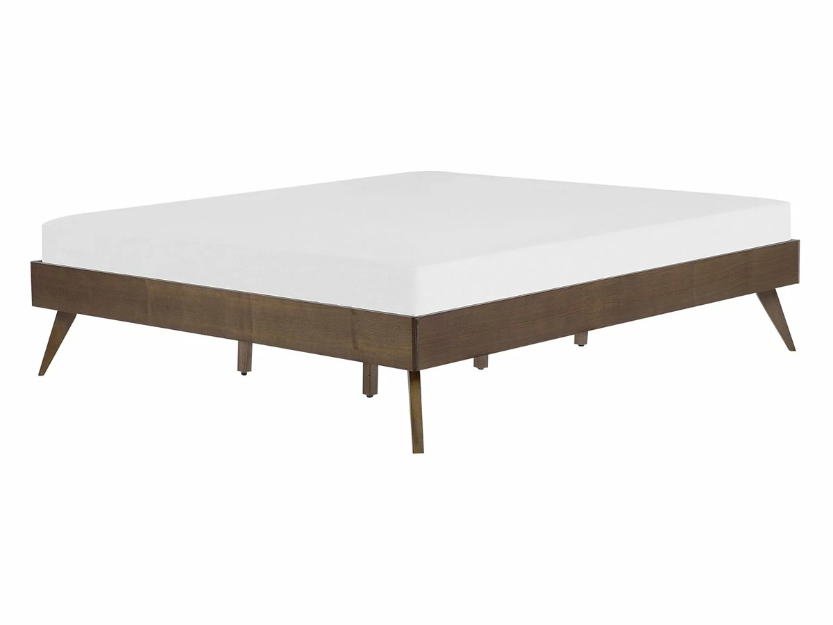 Cama de estilo minimalista. Esta cama con somier de estilo minimalista aporta un toque de modernidad a cualquier dormitorio. El somier de MDF de aspecto natural y acabado en madera combina bien con un diseño escandinavo o rústico. Diseñada sin cabecero, es la solución ideal para habitaciones de techos bajos o buhardillas. Detalles: Tipo de Producto: Cama matrimonial Estilo: Retro Color: Madera oscura Tipo de material: Derivado de madera Material principal: MDF Material adicional: Madera de caucho Parte posterior tapizada: No Acabado: Chapa de madera Dimensiones: Ancho: 148 cm Longitud: 202 cm Altura: 38 cm Superficie para dormir: 140×200 cm Peso: 36 kg Capacidad de peso: 270 kg La oferta incluye: 1 x Somier de láminas (13 listones curvados, 1 x Estructura de cama, No incluye: colchón y ropa de cama Ventajas: Apto para cualquier tipo de colchón, Combina con todo tipo de decoración, Estilo retro, Materiales de calidad, Construcción muy estable Información de montaje: Requiere montaje completo. 45-60 min. Información adicional: La altura del colchón visible en la imagen es de 20 cm. Consejos de mantenimiento: MDF: 1.Limpiar con un limpiador suave y un paño suave. Secar después de limpiar. Madera de caucho: 1.Seque inmediatamente después de limpiar. para evitar que se acumule agua en los muebles 2.Limpie con un limpiador y un paño suave en la dirección del grano 3.Los muebles con acabado de aceite deben engrasarse una vez al año