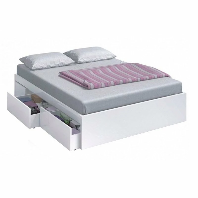 La cama Kendra es una práctica cama de matrimonio con 4 amplios cajones de almacenaje. Somier, colchón y almohadas no incluidos.
