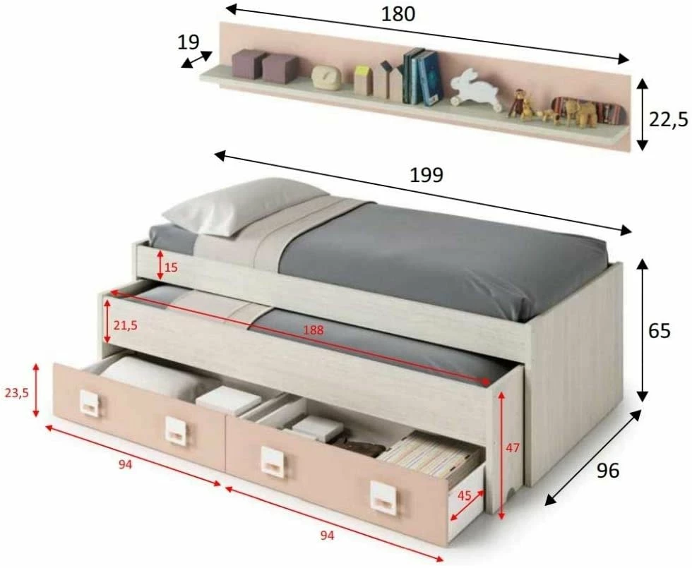 CAMA NIDO UNISEX PARA NIÑ@S: las dimensiones de la cama doble Nube, junto con sus colores cálidos y neutros, hacen posible que los peques de la casa puedan hacer uso de ella durante un amplio rango de tiempo. La versatilidad de este tipo de camas se maximiza gracias a la cajonera doble a los pies de la misma, la cual aporta un espacio extra de almacenaje para juguetes, ropa de cama, etc.