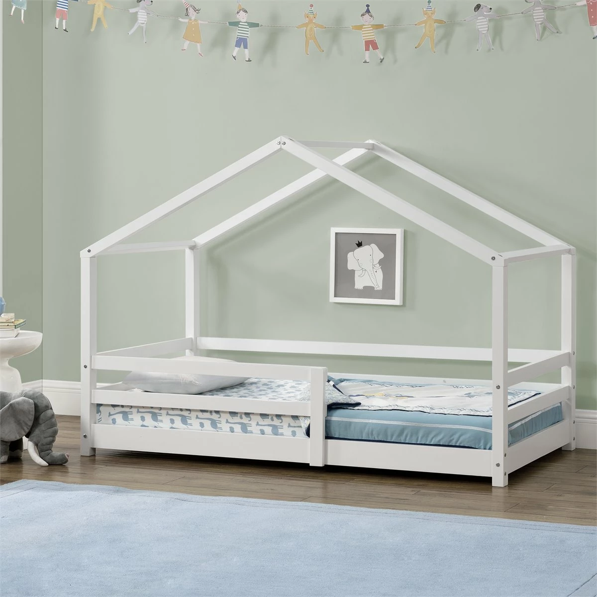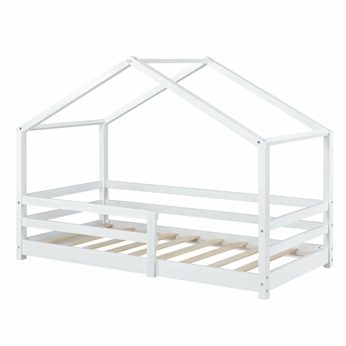 Esta resistente cama de madera de pino es la favorita de los niños. Es ideal para decorar cualquier habitación de los niños. La rejilla que rodea el colchón garantiza la seguridad de su hijo.