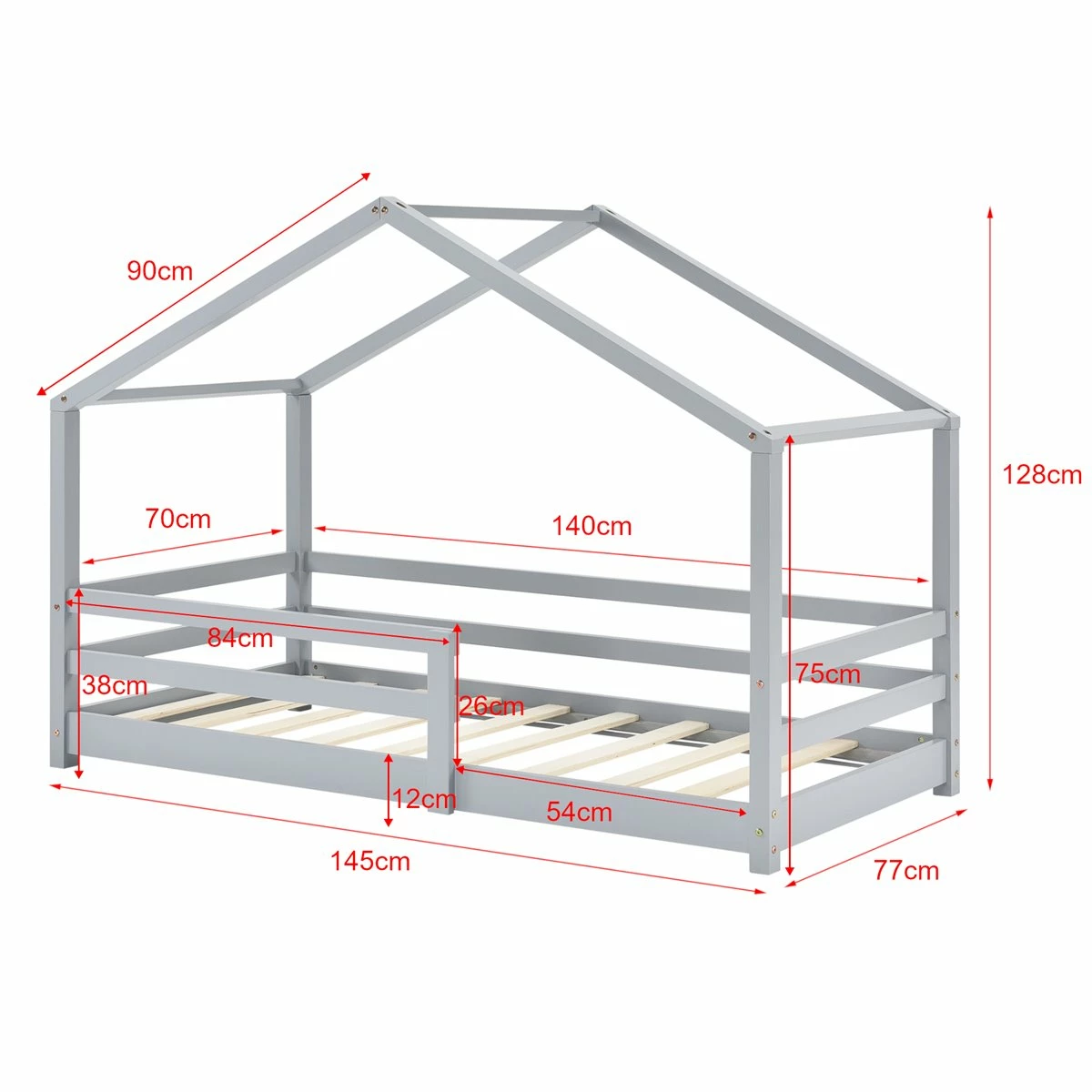 Esta resistente cama de madera de pino es la favorita de los niños. Es ideal para decorar cualquier habitación de los niños. La rejilla que rodea el colchón garantiza la seguridad de su hijo.