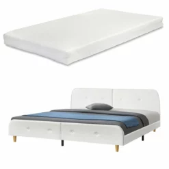 Cama Doble Tapizada Silkeborg MDF/Polipiel Colchón De Espuma Fría 180×200 Cm – Blanco [en.casa]