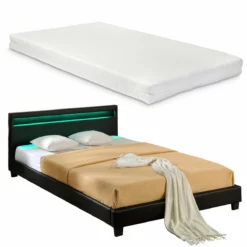Corium Cama De Matrimonio Paris De Cuero Sintético – Con Colchón Y LED – (160x200cm) – (negro)