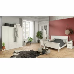 Corium Cama Doble (Valencia) De Cuero Sintético Con Colchón Y LED – (140cm X 200cm) – (blanco)