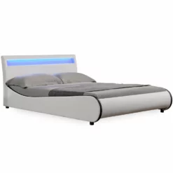 Corium Cama Doble (Valencia) De Cuero Sintético Con Colchón Y LED – (180cm X 200cm) – (blanco)