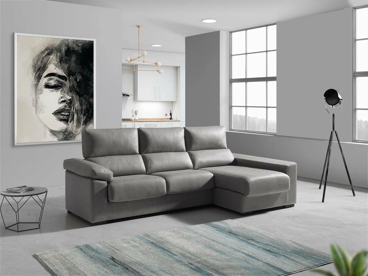 El Sofá Chaise Longue BEA es la solución perfecta para tu hogar. Un gran sofá con extras como asientos deslizantes y cabezales reclinables. Almohadas de asiento, respaldo y brazos desenfundables. Tiene Estructura en madera maciza y tablero de partículas. Bastidor de metal. Suspensión cincha elástica. Fibra 100 % en respaldos y brazos. Relleno de asientos goma de 30 kg/m3. Patas de plástico color wengue.