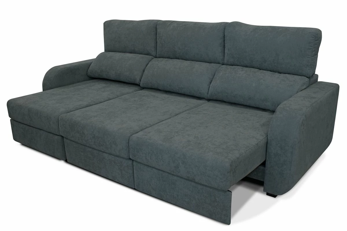 Descubre con la chaise longue APRIL cómo el máximo confort se une a lo último en diseño, siempre con materiales de máxima calidad.El único resultado posible es esta chaise longue en la que estarás deseando tumbarte solo con verla, y dejarte acariciar por su mullido tapizado en tela. Y para obtener una sensación total de relax, puedes reclinar sus respaldos y utilizar la función deslizante de sus asientos siempre que quieras. Si lo haces totalmente, descubrirás una amplia cama que te podrá sacar de más de un imprevisto.Además, cuenta con un práctico espacio de almacenaje debajo de la chaise. Esta chaise longue convertible en cama APRIL, además, aportará todo su encanto de vanguardia a tu salón o a cualquier estancia de tu casa.