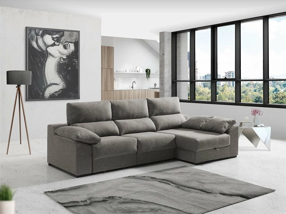 deslizantes. Cabezales reclinables, Chaise Longue con arcón ybrazo sofá con