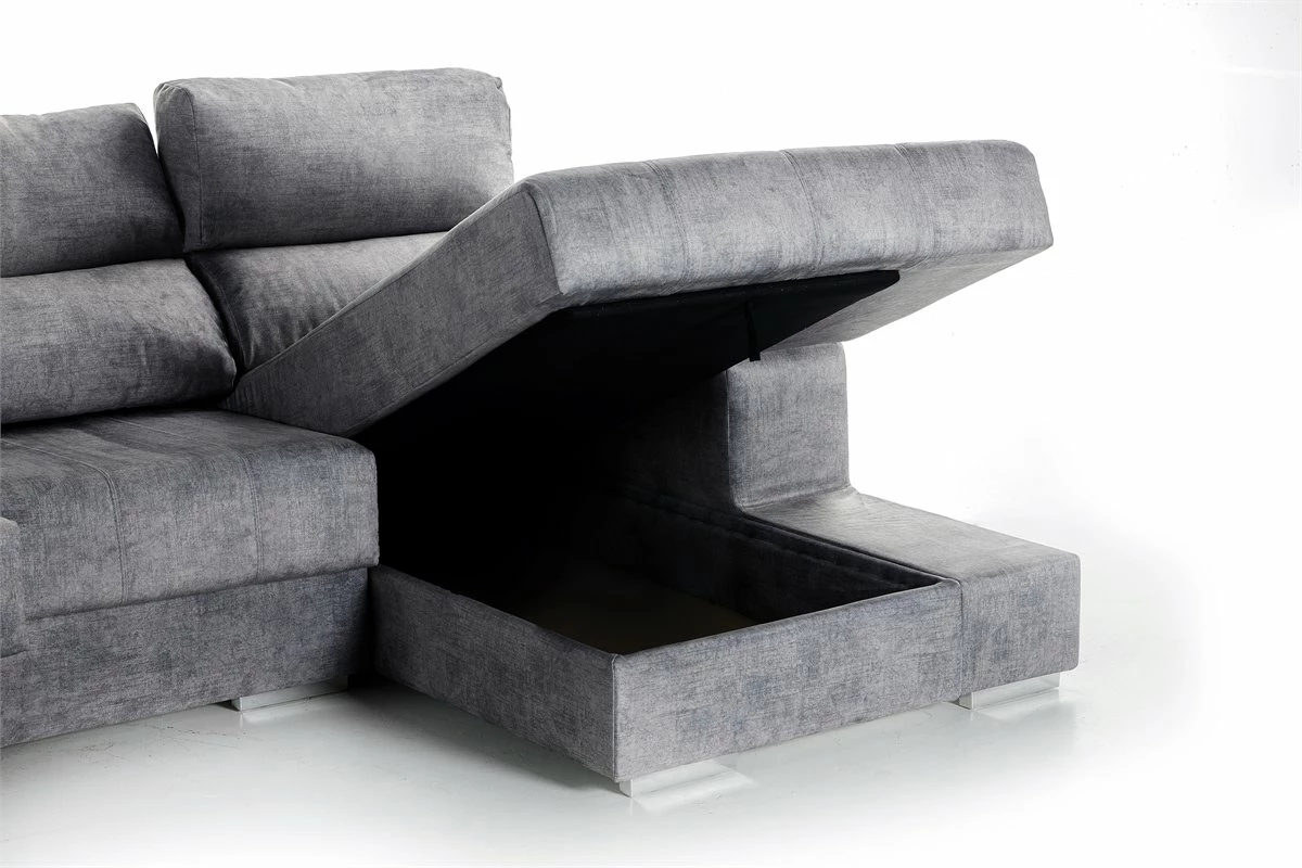 Prepárese para experimentar la máxima comodidad y lujo con el Chaise longue DANIELA 2 color gris plata y de posicion derecha. Cuenta con asientos deslizantes ajustables y dos cabezales reclinables para una máxima relajación. Con un puf que funciona como asiento adicional y almacenamiento, ¡vivirás en un lujo maravilloso! Con diseños ergonómicos y una estética moderna, seguro que disfrutarás de tu tiempo libre con estilo. ¡Prepárate para relajarte con estilo!