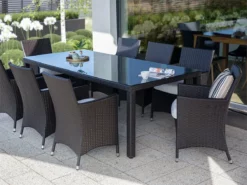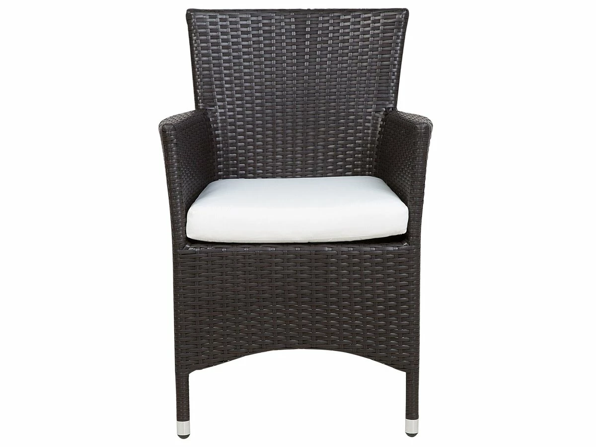 Juego de sillas de ratán sintético. Añade a tu zona exterior este conjunto de 2 sillas de jardín. Está fabricado a partir de ratán sintético de alta calidad. La estructura de metal con recubrimiento en polvo garantiza estabilidad. El respaldo alto y los reposabrazos cómodos proporcionan la máxima relajación. Los cojines vienen con fundas extraíbles que facilitan la limpieza. Detalles: Tipo de Producto: Silla de jardín Estilo: Moderno Color: Marrón Tonalidad: Blanco crema Tipo de material: Ratán sintético Material principal: Ratán sintético Material adicional: Poliéster Material de las patas: Mimbre sintético Material del asiento: Tejido Composición del Material: 100% Poliéster Apoyabrazo: Sí Acabado: Revestimiento en polvo Plegable: No Densidad de espuma del asiento: 25 kg/m3 Apilable: No Dimensiones: Altura del apoyabrazos: 66 cm Profundidad: 52 cm Espesor del asiento: 11 cm Altura del asiento: 41 cm Ancho: 52 cm Altura: 86 cm Superficie del asiento: 45×44 cm Peso: 7 kg Capacidad de peso: 140 kg La oferta incluye: 2 x Sillón, 2 x Cojines del asiento Ventajas: Cómodos apoyabrazos, Patas estables y resistentes, Diseño tradicional con un toque moderno, Ideal para uso al aire libre, Resistencia UV 5 (ISO 105-B02, Fundas de cojines con costuras ocultas y cremalleras, Ligero y sólido a la vez, muy fácil de mover Información de montaje: No requiere montaje Información adicional: El producto viene con un libro de cuidados detallado para ayudarte a mantener tus muebles en las mejores condiciones durante muchos años. Consulta estos consejos para garantizar el mantenimiento adecuado de tus muebles nuevos – encontrarás las instrucciones de mantenimiento junto con el manual de montaje. Texto de resistencia: Gracias a su resistencia al agua, puedes utilizar el producto al aire libre y dejarlo a la intemperie durante lluvias ligeras. Si no es posible guardarlo en un lugar cerrado y protegido, recomendamos utilizar una funda protectora. La exposición prolongada a la humedad puede provocar daños en el mueble. Resistencia: Agua ligera / humedad Consejos de mantenimiento: Ratán sintético: 1.Se recomienda utilizar una funda protectora para la temporada de invierno o, si es posible, para mantener los muebles secos y frescos en el interior 2.Limpiar con detergentes a base de jabón. No utilizar limpiadores químicos corrosivos 3.Los utensilios o accesorios de vidrio pueden sobrecalentar la superficie 4.Para alargar la vida útil del mueble, protéjalo de la exposición directa al sol. Poliéster: 1.Lavar a mano únicamente, usar agua fría y un detergente suave 2.Cuando no esté en uso, manténgalo en un lugar limpio y seco para protegerlo de las condiciones atmosféricas 3.No secar en secadora ni planchar.