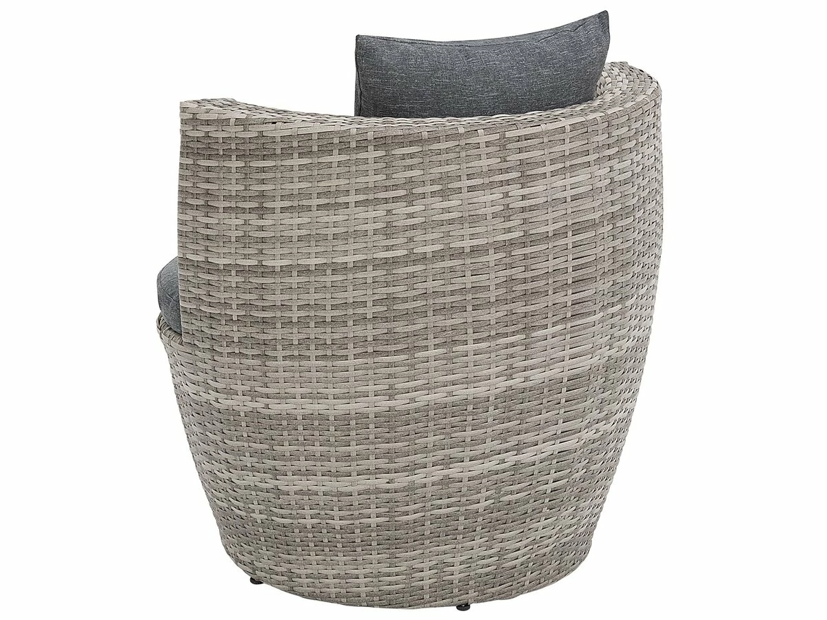 Conjunto de muebles en ratán para exteriores. Este juego de exterior hecho de ratán resistente es ideal para gozar de tu tranquilo café de la mañana en tu balcón o porche. Toma tu copa y tu periódico o disfruta junto con tus amigos. El conjunto viene con dos sillas y una mesita baja. Están singularmente desarrolladas para formar un vaso gigante cuando apiladas unas sobre otras. Los asientos vienen con cojín de fondo además de almohada trasera para óptimo confort. En caso de los muebles de ratán, si el suelo no es perfectamente liso, se puede ajustar la altura de cada de las patas por separado. Detalles: Tipo de Producto: Conjunto bistro Estilo: Moderno Color: Gris Tonalidad: Gris oscuro Tipo de material: Ratán sintético Material principal: Ratán sintético Material adicional: Vidrio templado Material de la superficie: Vidrio Composición del Material: 100% Poliéster Acabado: Revestimiento en polvo Dimensiones: Dimensiones de la silla: 73x70x71 cm Dimensiones de la mesa de centro: 54x54x48 Altura del asiento: 35 cm Peso: 15 kg Capacidad de peso de la silla: 120 kg Capacidad de peso de la mesa: 70 kg La oferta incluye: 2 x Silla, 1 x Mesa de centro, Cojines incluidos Ventajas: Perfecto para todo tipo de exterior, Resistencia UV 5 (ISO 105-B02, Permanece estable incluso en superficies irregulares, Apilable para un almacenaje mejor, Fundas extraíbles, Tablero en vidrio templado de seguridad Información de montaje: No requiere montaje Información adicional: El producto viene con un libro de cuidados detallado para ayudarte a mantener tus muebles en las mejores condiciones durante muchos años. Consulta estos consejos para garantizar el mantenimiento adecuado de tus muebles nuevos – encontrarás las instrucciones de mantenimiento junto con el manual de montaje. Texto de resistencia: El producto está hecho con tela resistente a los rayos UV, lo que significa que se puede usar bajo la luz del sol sin preocuparse por la pérdida de color. En cualquier caso, es recomendable colocar los muebles debajo de una cubierta impermeable cuando no se utilicen, para asegurar su máxima durabilidad. Resistencia: Rayos UV Consejos de mantenimiento: Ratán sintético: 1.Los utensilios o accesorios de vidrio pueden sobrecalentar la superficie 2.Para alargar la vida útil del mueble, protéjalo de la exposición directa al sol 3.Se recomienda utilizar una funda protectora para la temporada de invierno o, si es posible, para mantener los muebles secos y frescos en el interior 4.Limpiar con detergentes a base de jabón. No utilizar limpiadores químicos corrosivos. Poliéster: 1.Cuando no esté en uso, manténgalo en un lugar limpio y seco para protegerlo de las condiciones atmosféricas 2.No secar en secadora y no planchar 3.Lavar a mano o seleccionar un ciclo de lavado de lana (30 ° C, a menos que el fabricante especifique lo contrario. Lavar del revés con la cremallera cerrada. Vidrio templado: 1.Para evitar rayones, no use un limpiador cremoso 2.Limpiar con un detergente suave o acondicionador de vidrio con un paño suave. Secar después de limpiar 3.Secar después de la lluvia o la nieve. Durante el invierno, utilice una funda protectora o guarde los muebles en el interior.