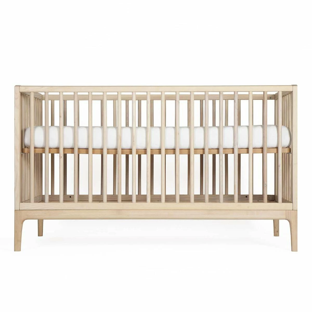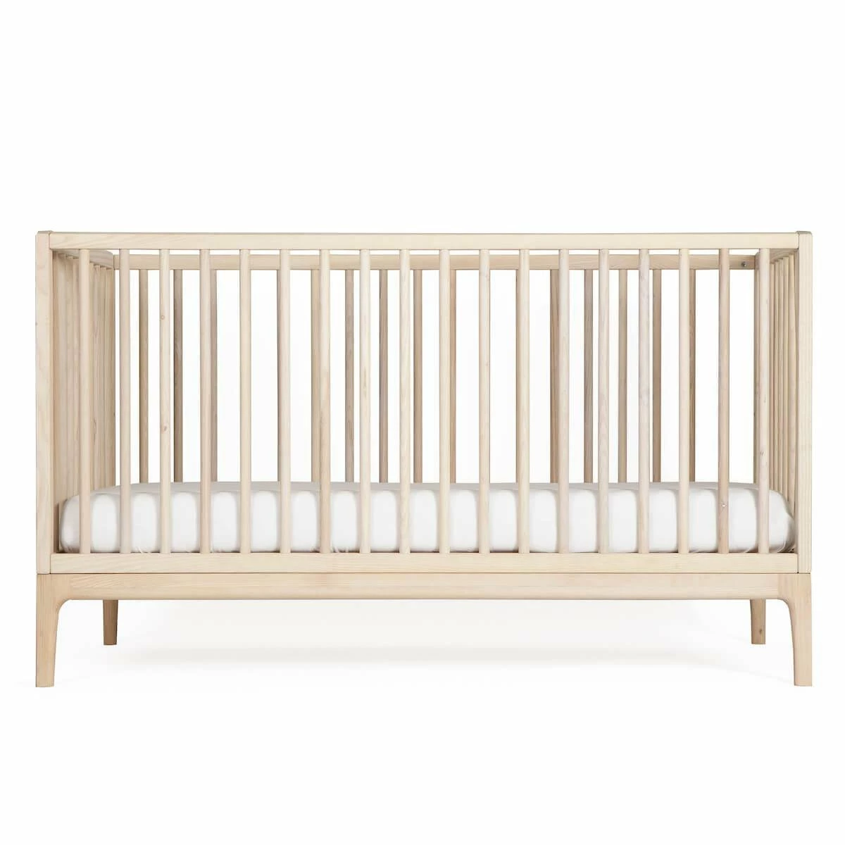 ¡Os ofrecemos 8 posibilidades de cunas con la colección KERA! Una colección duradera y ecológica que se adapta a vuestro gusto ofreciendo 4 patas diferentes y dos bases distintas. Esta combinación se compone de la base Round con acabados redondeados y el pie Pure inclinado de estilo contemporáneo. El diseño de KERA es elegante, sencillo y minimalista. Los detalles propios de la construcción, como los tornillos, son invisibles. En el diseño de esta cuna, se ha prestado especial atención a las necesidades del bebé y de los padres. El ajuste de altura de la base en 2 niveles es ergonómico. Con su gran tamaño (colchón de 70×140 cm y su barandilla de seguridad en forma de onda, KERA puede utilizarse hasta los 6 años. Gracias a su kit de transformación, la cama KERA puede transformarse en un sofá, convirtiéndose en el lugar ideal para contarle sus cuentos favoritos. La cama KERA es de madera maciza de fresno aceitada. Combina perfectamente con la colección NADO. El aceite aplicado, contiene pigmentos blancos naturales que conservan el color y la hermosa veta de la madera de forma brillante. La camaKERA ha sido diseñada y desarrollada en Alemania por el estudio Ellenberger y se fabrica en Europa.