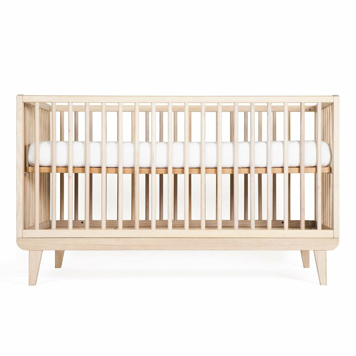 ¡Os ofrecemos 8 posibilidades de cunas con la colección KERA! Una colección duradera y ecológica que se adapta a vuestro gusto ofreciendo 4 patas diferentes y dos bases distintas. Esta combinación se compone de la base Round con acabados redondeados y el pie Pure inclinado de estilo contemporáneo. El diseño de KERA es elegante, sencillo y minimalista. Los detalles propios de la construcción, como los tornillos, son invisibles. En el diseño de esta cuna, se ha prestado especial atención a las necesidades del bebé y de los padres. El ajuste de altura de la base en 2 niveles es ergonómico. Con su gran tamaño (colchón de 70×140 cm y su barandilla de seguridad en forma de onda, KERA puede utilizarse hasta los 6 años. Gracias a su kit de transformación, la cama KERA puede transformarse en un sofá, convirtiéndose en el lugar ideal para contarle sus cuentos favoritos. La cama KERA es de madera maciza de fresno aceitada. Combina perfectamente con la colección NADO. El aceite aplicado, contiene pigmentos blancos naturales que conservan el color y la hermosa veta de la madera de forma brillante. La camaKERA ha sido diseñada y desarrollada en Alemania por el estudio Ellenberger y se fabrica en Europa.