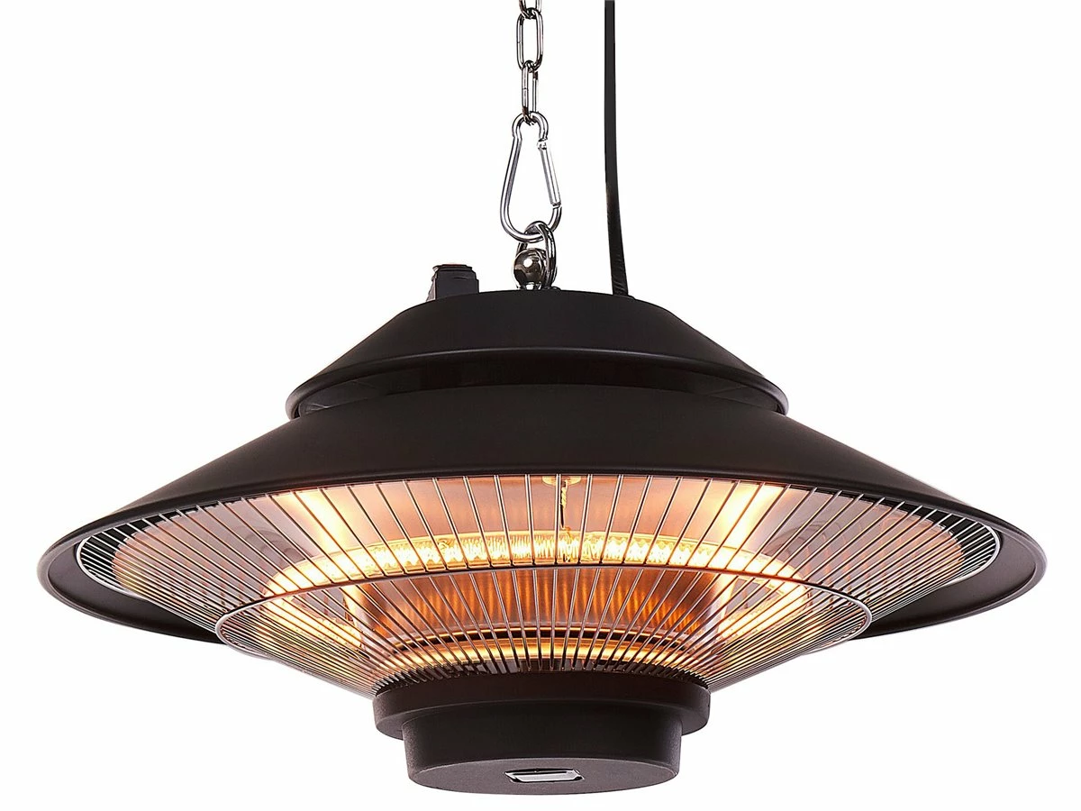 Calentador de exterior. Esta estufa eléctrica de exterior es ideal para las tardes frías de reunión en el patio. La emisión de calor por infrarrojos sube rápidamente la temperatura, dando la sensación de exposición al sol. El control remoto, incluido con el dispositivo, permite encender el calefactor de forma sencilla. Detalles: Tipo de Producto: Estufa de patio Color: Negro Tipo de material: Metal Material principal: Aluminio Código de protección IP: IP 44 (Impermeable Consumo de potencia: 1500 W Montaje: Colgante Dimensiones: Longitud del cable: 185 cm Profundidad: 45 cm Ancho: 45 cm Altura: 72 cm Peso: 3 kg La oferta incluye: 1 x Estufa de exterior Ventajas: Materiales de calidad, Cumple con los estándares PAH, RoHS y SAA, Certificados GS, CE, CB, Ideal para uso al aire libre, Ajustable a través de control remoto Información de montaje: Requiere montaje parcial. 20-40 min. Información adicional: La estufa requiere hasta 5 minutos para alcanzar su máxima potencia de calentamiento, Distancia mínima: 25 cm de la pared, 50 cm del techo, 180 cm del suelo, La distancia óptima de calentamiento es de 2 metros. Aunque se puede sentir el calor a mayor distancia, se recomienda colocar el dispositivo lo más cerca posible y así aprovechar al máximo su potencial. Consejos de mantenimiento: Aluminio: 1.Antes de comenzar a limpiar, desconecta el enchufe. No toques la estufa cuando esté caliente o no se haya enfriado por completo 2.Limpiar con un paño húmedo, 3.No meter en el agua.