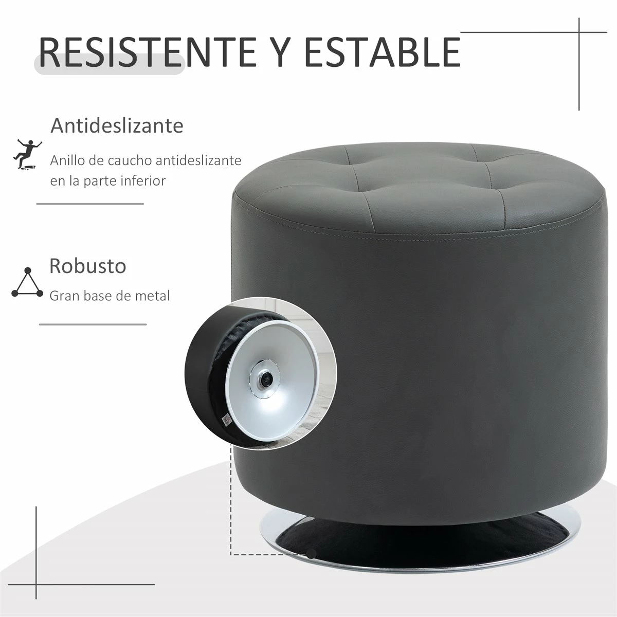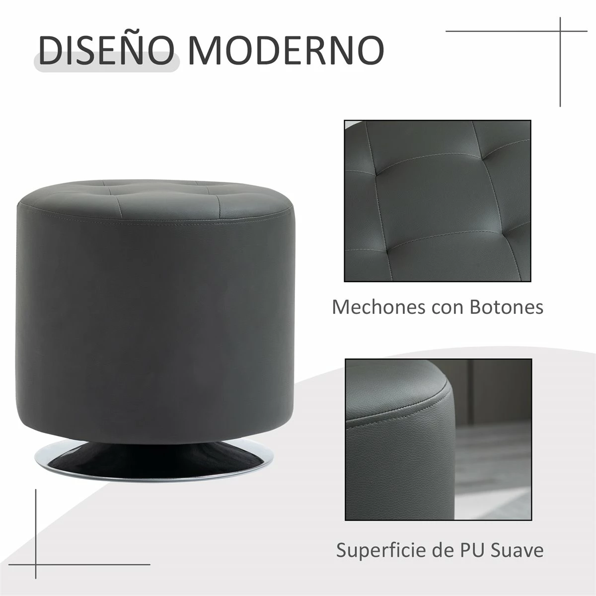 ¿Estás en el sofá y no sabes dónde apoyar los pies? ¿En tu casa siempre hay alguien que se queda sin asiento? Este taburete de HOMCOM es la solución. Acolchado y tapizado en agradable tejido de cuero sintético ofrece un asiento cómodo para sentarse. Su diseño con mechones con botones proporcionará un toque de elegancia allá dónde lo coloques, sea en el comedor de tu casa, dormitorio u oficina. Además, tiene una base giratoria y también podrás usarlo como mesa auxiliar o reposapiés, por ejemplo.