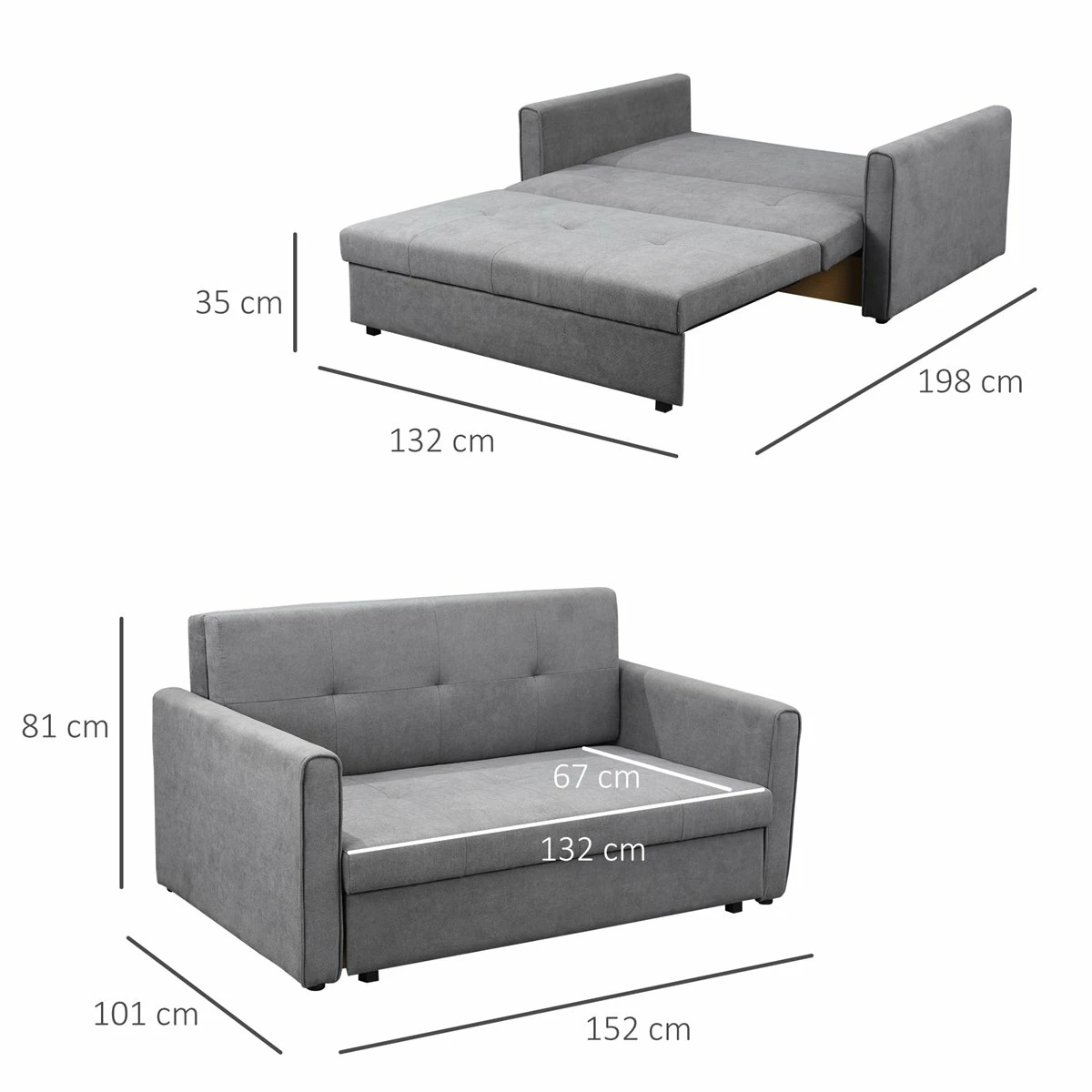 - – SOFÁ CONVERTIBLE EN CAMA: Este sofá de 2 plazas se convierte rápida y fácilmente en cama, proporcionando un lugar de descanso para tus invitados o si deseas quedarte una noche a dormir en el salón después de mirar una película – ALMACENAMIENTO OCULTO: Debajo del asiento de este sofá de salón hay un compartimento para guardar tus cosas. Además, la tapa permanece abierta para poner y sacar todo de forma segura y fácil – MÁXIMO CONFORT: El sofá cama modular en 2 plazas, tapizado en un agradable tejido de poli algodón y asiento con un grueso acolchado, ofrece una comodidad excepcional, para descansar y relajarse en tu tiempo libre. Incluye 2 cojines pequeños adicionales – ESTRUCTURA DE MADERA RESISTENTE: La estructura de madera maciza de eucalipto de este sofá relax de 2 plazas proporciona un soporte resistente y estable mientras descansas viendo la televisión o durmiendo – MEDIDAS TOTALES: 152x101x81 cm (LxANxAL (en posición sofá, 132x198x35 cm (LxANxAL (en posición de cama. Peso máximo soportado: 200 kg (100 kg cada asiento y 20 kg (espacio de almacenaje. Requiere montaje