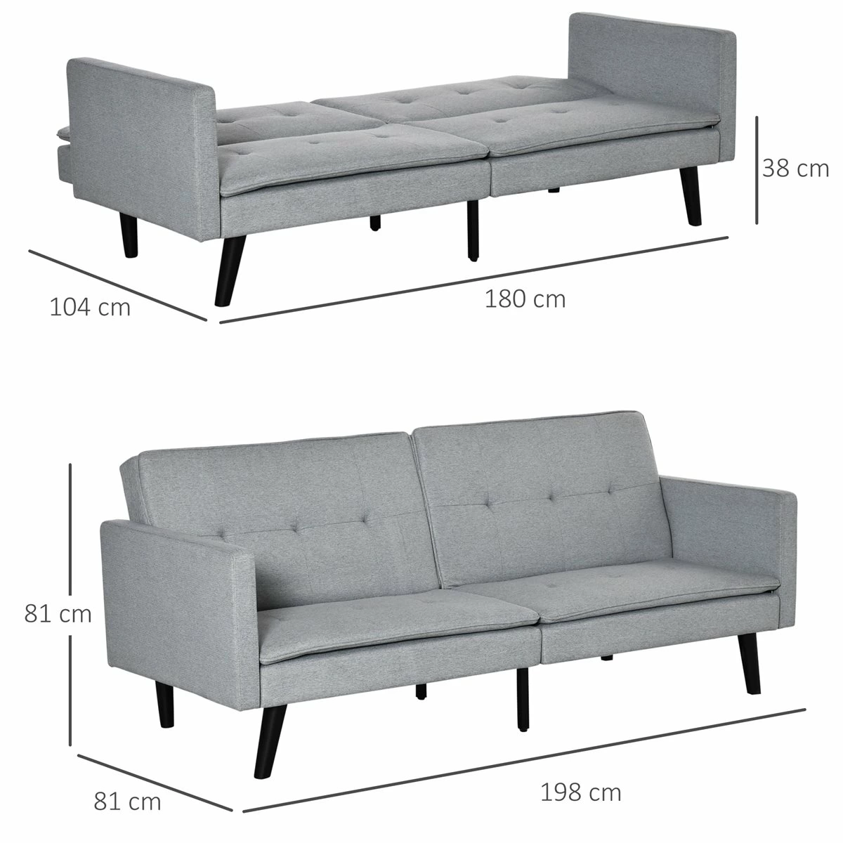 - – SOFÁ CONVERTIBLE EN CAMA: Este sofá de 3 plazas se puede transformar rápida y fácilmente en una cama individual, ofreciendo un lugar de descanso para tus invitados o si deseas dormir en la sala de estar por una noche después de ver una película – RESPALDOS RECLINABLES: Este sofá tiene un respaldo que puede reclinarse en 3 posiciones diferentes para que puedas encontrar la postura más cómoda mientras ves la televisión, descansas o tomas una siesta – CÓMODO Y ELEGANTE: El sofá, tapizado en un agradable tejido mixto de poliéster y algodón y asiento acolchado, ofrece una comodidad excepcional para el descanso y la relajación en tu tiempo libre. El respaldo con mechones de botones y las patas en color negro aportan un toque de elegancia al sofá – MATERIAL RESISTENTE: Las patas de madera maciza de este sofá contribuyen a su solidez gracias a su dureza y resistencia. Al mantener la base elevada, protege de la humedad y al mismo tiempo facilita la limpieza del suelo. El tejido del tapizado es suave y transpirable – MEDIDAS TOTALES: En posición de sofá 198x81x81 cm (LxANxAL y en posición de cama: 180x104x38 cm (LxANxAL. Peso máximo soportado: 300 kg