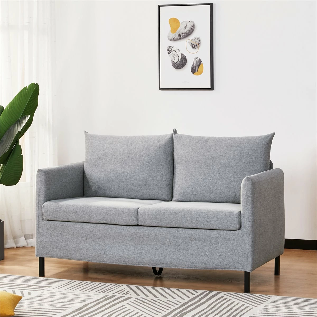 - – SOFÁ DE 2 PLAZAS: Sofá doble de tamaño compacto con suficiente espacio para que se sienten 2 personas cómodamente. Ideal para salones, oficinas o cualquier espacio pequeño – ESTILO NÓRDICO: Este sofá de estilo nórdico con la combinación de tapizado gris y las patas de acero le dará un toque de elegancia a tu hogar. Combinará fácilmente con tu decoración y con el resto de tus muebles – MÁXIMO CONFORT: Sofá tapizado en agradable tejido de poliéster con tacto de lino. Ofrece una comodidad sin igual, para que puedas sentarte o tumbarte a descansar y relajarte. La funda del cojín con cremallera se puede quitar para facilitar su limpieza – RESISTENTE Y ESTABLE: Este sofá para 2 personas cuenta con 4 patas de acero resistentes que contribuyen a una mayor resistencia y estabilidad. Además, al mantener la base elevada, protege de la humedad y facilita la limpieza del suelo – MEDIDAS TOTALES: 130x67x76,5 cm (LxANxAL. Medidas del asiento: 118x41x44 cm (LxANxAL. Peso máximo soportado: 100 kg (por asiento. Requiere montaje