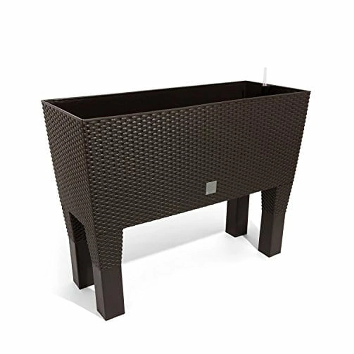 JARDINERA CON PATAS CON ACABADO EXTERIOR SIMIL RATTAN. MACETA DE PLASTICO INYECTADO DE GRAN CALIDAD. ESPECIAL PARA INTERIOR , EXTERIOR O TERRAZA. INCLUYE SISTEMA DE AUTORRIEGO . CON EL SISTEMA DE AUTORRIEGO INCLUIDO , PUEDE OLVIDARSE DEL REGADO DE LA PLANTA DURANTE MUCHOS DIAS. INCLUYE PATAS .MEDIDAS: 60X25X24 CM DE ALTO ( MEDIDA JARDINERA RECTANGULAR 46CM DE ALTO INCLUIDA PATAS. CAPACIDAD LITROS: 30 LTS. ( POSIBILIDAD DE UTILIZAR COMO HUERTO URBANO COLOR CHOCOLATE