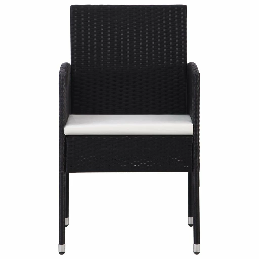 ¡Crea una estética atractiva y cohesionada en el espacio al aire libre de tu casa con este juego de comedor para jardín de ratán sintético! La mesa y las sillas de comedor están hecha de ratán PE de bajo mantenimiento, por lo que son fáciles de limpiar con un paño húmedo y también son perfecta para usar al aire libre. Gracias a la estructuras de acero, la mesa y las sillas son estables y seguras. La superficie de vidrio también da un toque lujoso al espacio exterior de tu casa. Además, los cojines gruesos y extraíbles son muy cómodos. Ten en cuenta que recomendamos cubrir el set de comedor en caso de lluvia, nieve y heladas para que sea más duradero. Mesa:Color: NegroMaterial: Ratán PE, acero Material de la superficie: VidrioDimensiones de la mesa: 140 x 80 x 74 cm (largo x ancho x altoFácil de limpiarSilla:Color: NegroColor de los cojines: Blanco cremaMaterial: Ratán PE, acero Material del cojín: 100% poliésterDimensiones de la silla: 52 x 56 x 88 cm (ancho x profundo x altoDimensiones del cojín: 47 x 46 x 5 cm (ancho x profundo x grosorAnchura del asiento: 47 cmProfundidad del asiento: 46 cmAltura del asiento desde el suelo: 43 cmAltura del reposabrazos desde el suelo: 66 cmRequiere montaje: SíLa entrega incluye:1 x Mesa6 x Sillas6 x Cojines de asiento